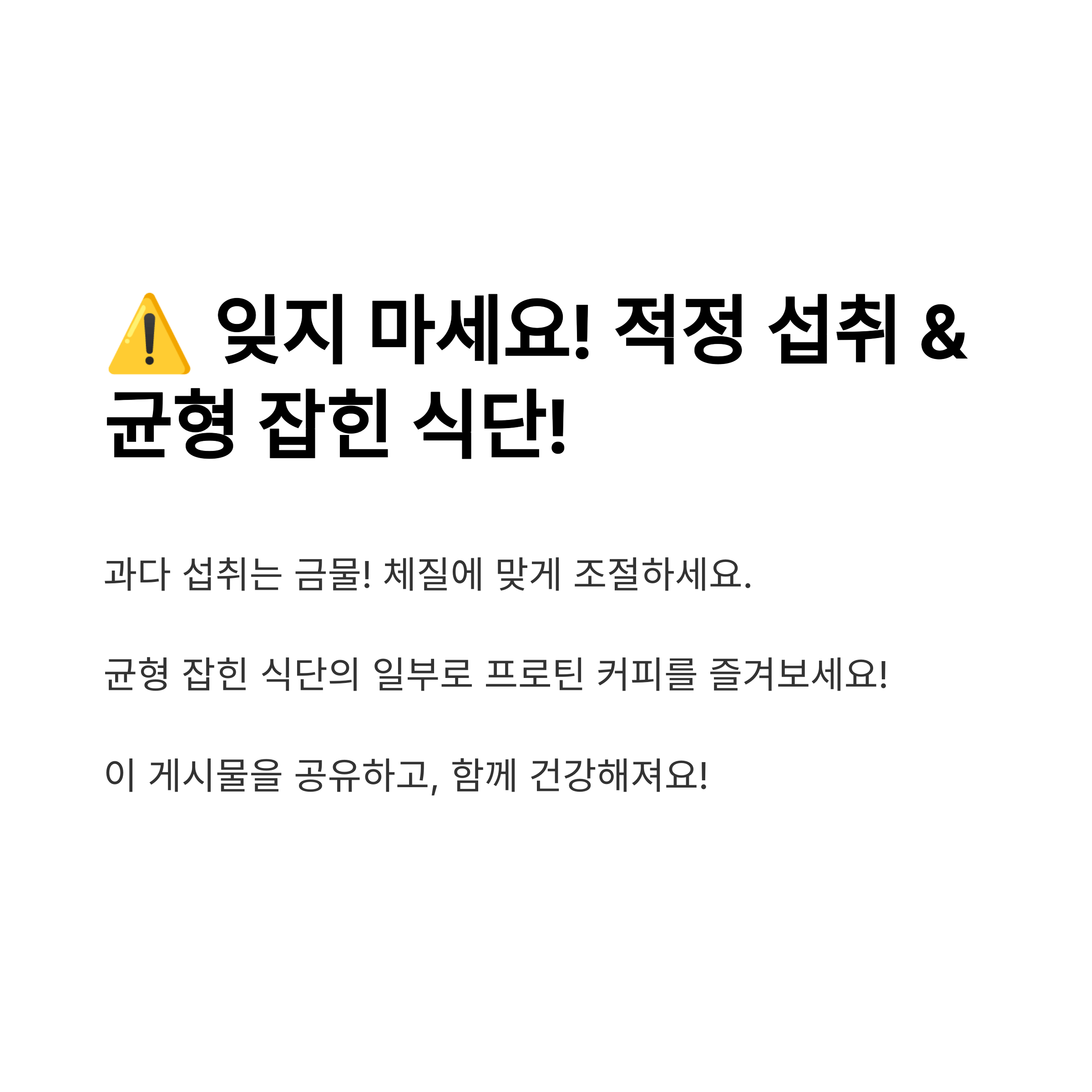 커피와 단백질을 함께 섭취하면 운동 효과를 극대화할 수 있는 좋은 방법이 될 수 있습니다. 하지만 무조건 많이 섭취하는 것보다 자신의 체질과 생활 패턴에 맞추는 것이 중요합니다. 카페인에 민감한 사람은 저녁보다는 오전이나 점심에 섭취하는 것이 좋으며, 적절한 양의 단백질을 섭취해야 신체에 무리가 가지 않습니다.