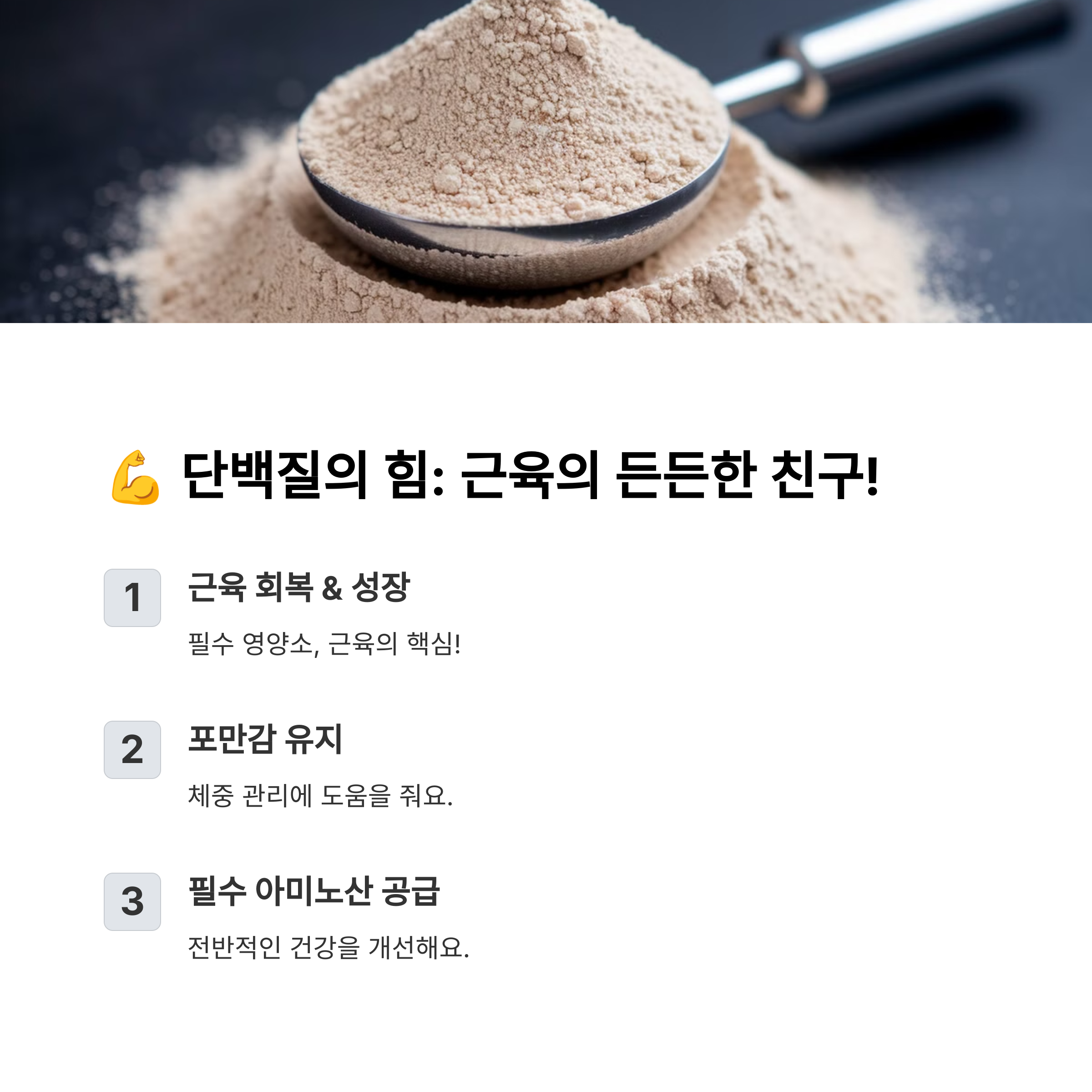 | 단백질의 역할 | 근육 회복과 형성에 필수적인 영양소로, 포만감을 유지하는 데도 효과적이다. |