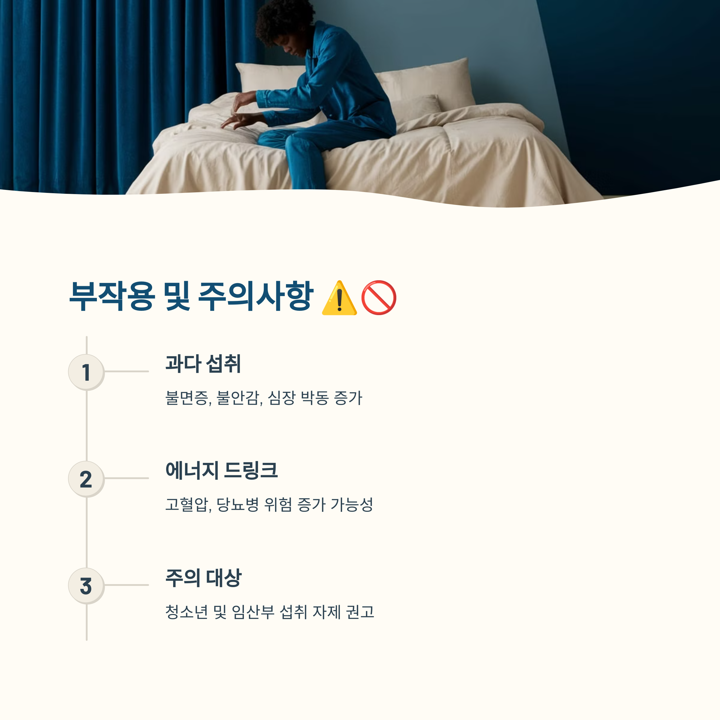 | 에너지 드링크 카페인 함량 | 한 캔(250ml) 기준, 80~150mg 함유 |