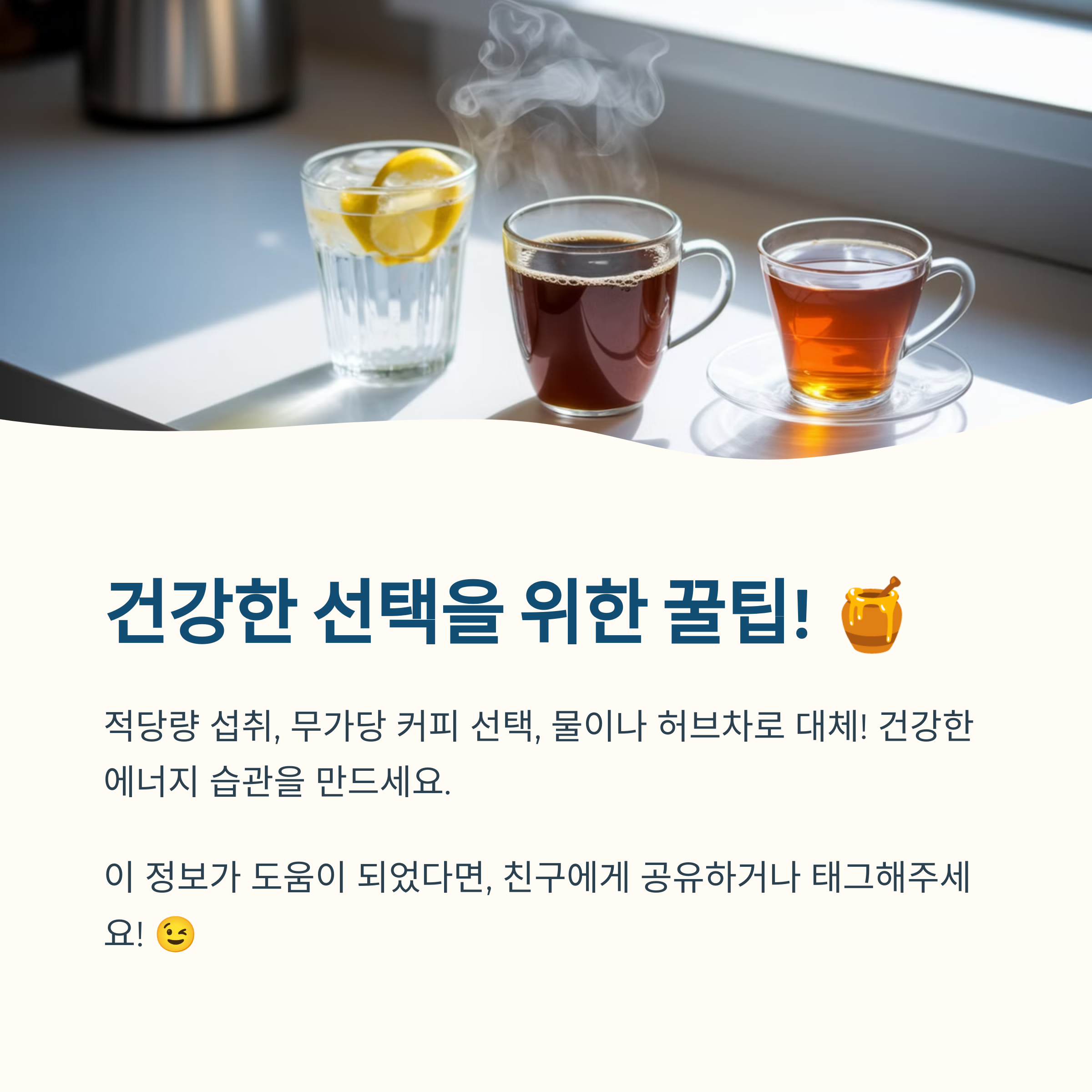 여러분은 커피와 에너지 드링크 중 어떤 음료를 선호하시나요? 혹은 다른 건강한 음료를 즐겨 드시나요? 댓글로 여러분의 의견을 공유해주세요!