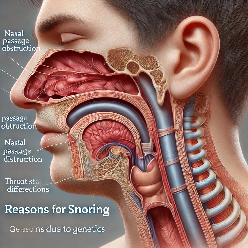 신체 구조는 코골이에 직접적인 영향을 미칩니다. 특히 기도가 좁거나 혀와 목젖이 큰 경우 코골이가 발생할 확률이 높아집니다.