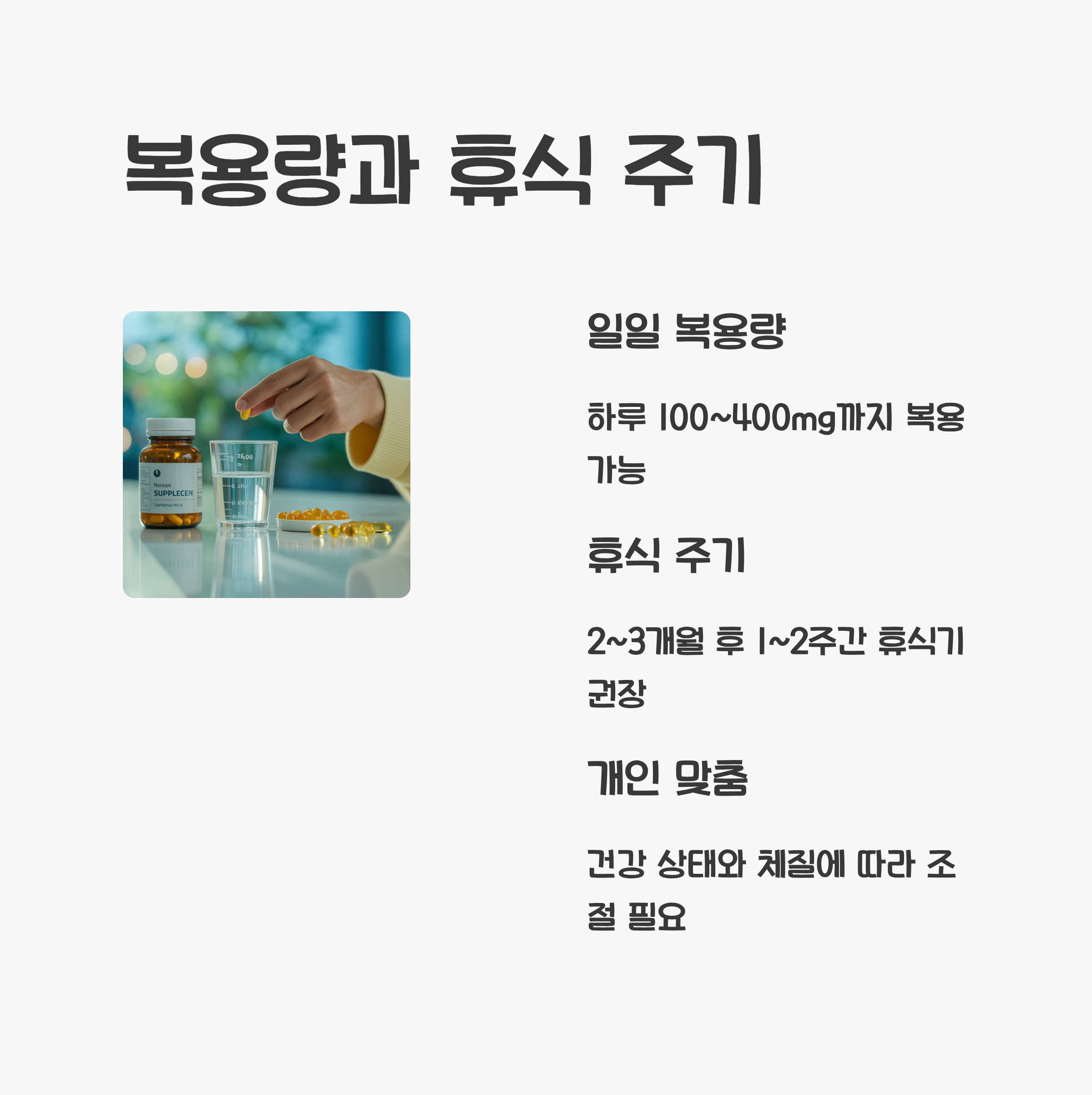 개인의 건강 상태나 체질에 따라 복용량과 간격을 조절하는 것이 중요합니다.