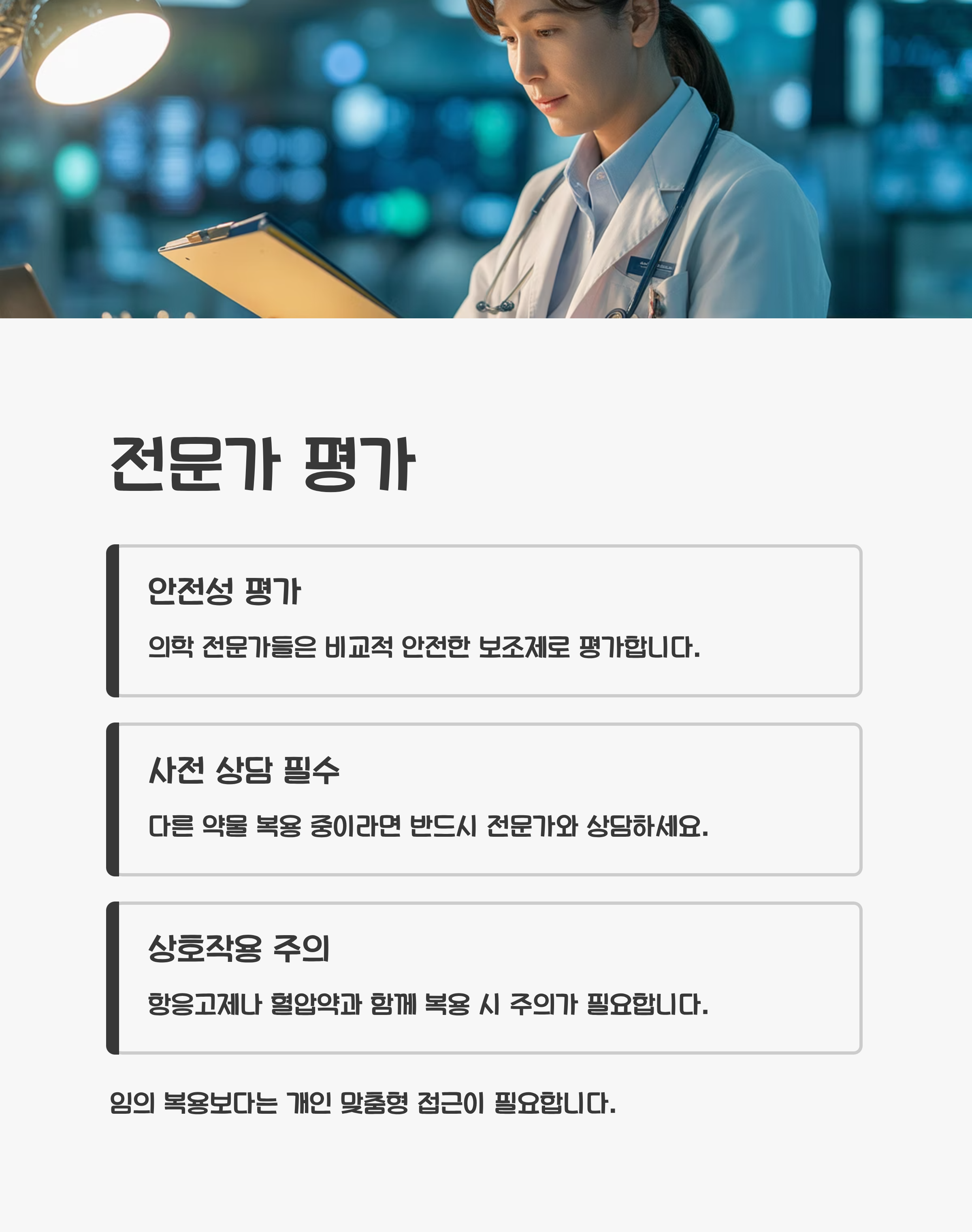임의 복용보다는 개인 맞춤형 접근이 필요합니다.