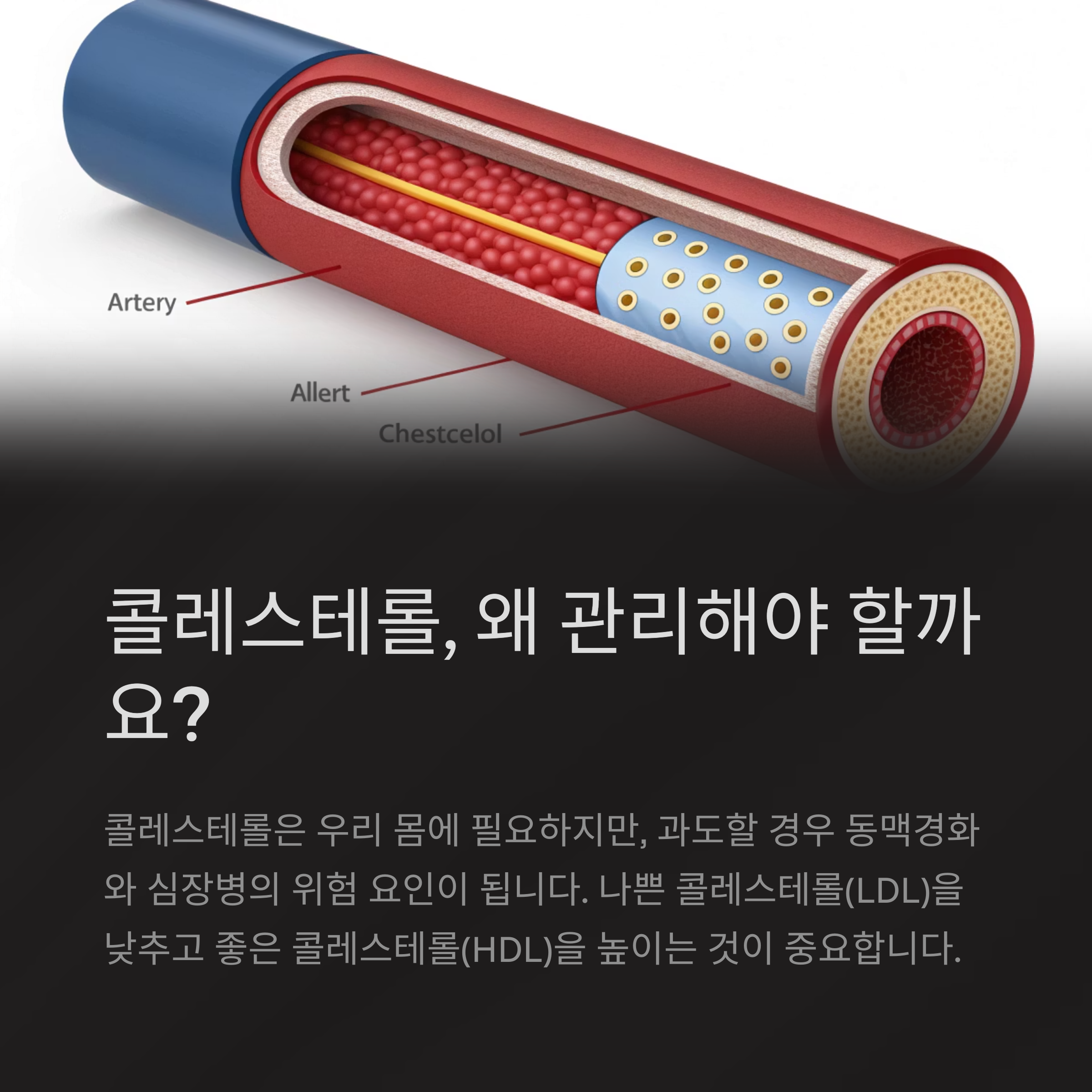 콜레스테롤은 우리 몸에 꼭 필요한 성분이지만, 과도할 경우 동맥경화, 심장병 등