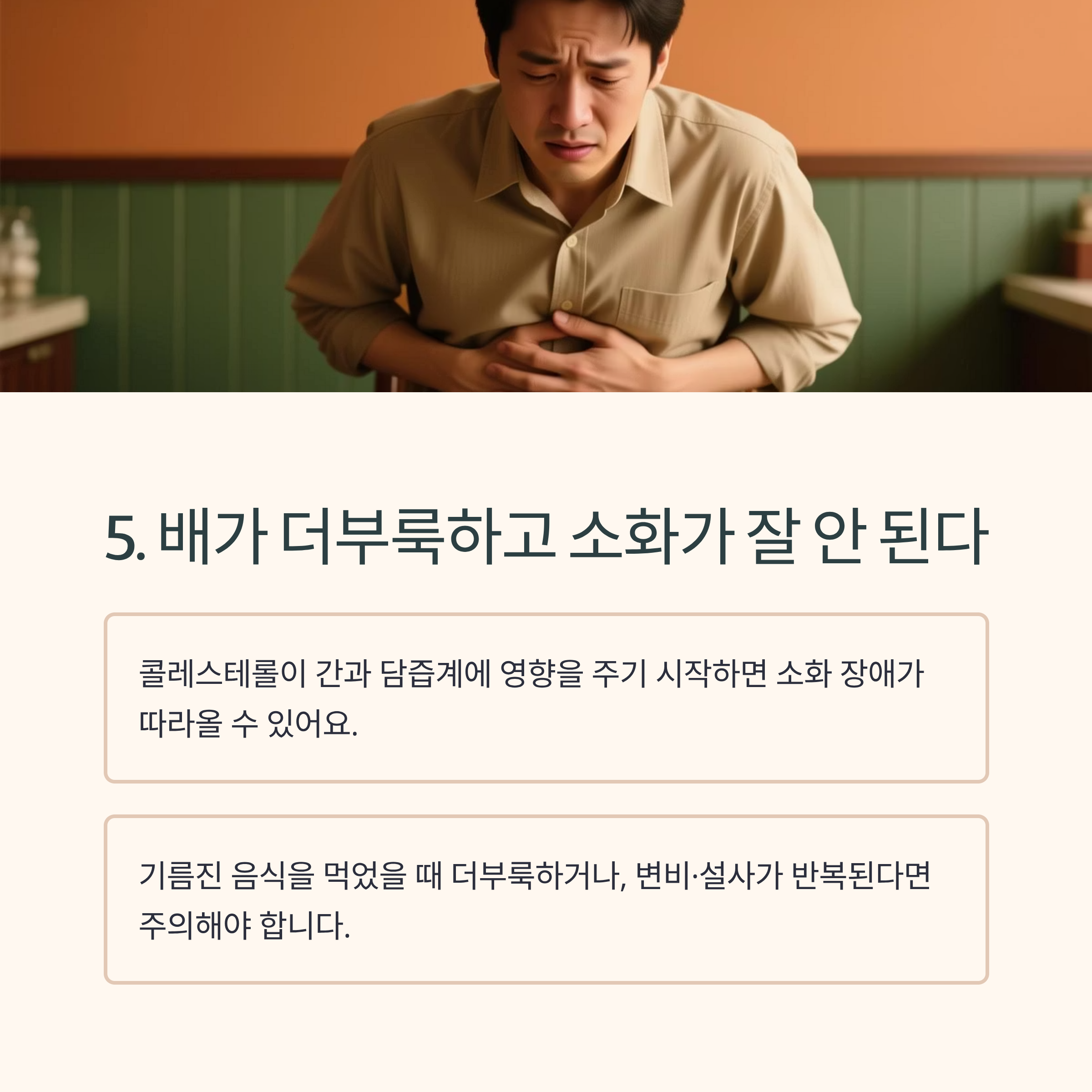 콜레스테롤이 간과 담즙계에 영향을 주기 시작하면 소화 장애가 따라올 수 있어요.