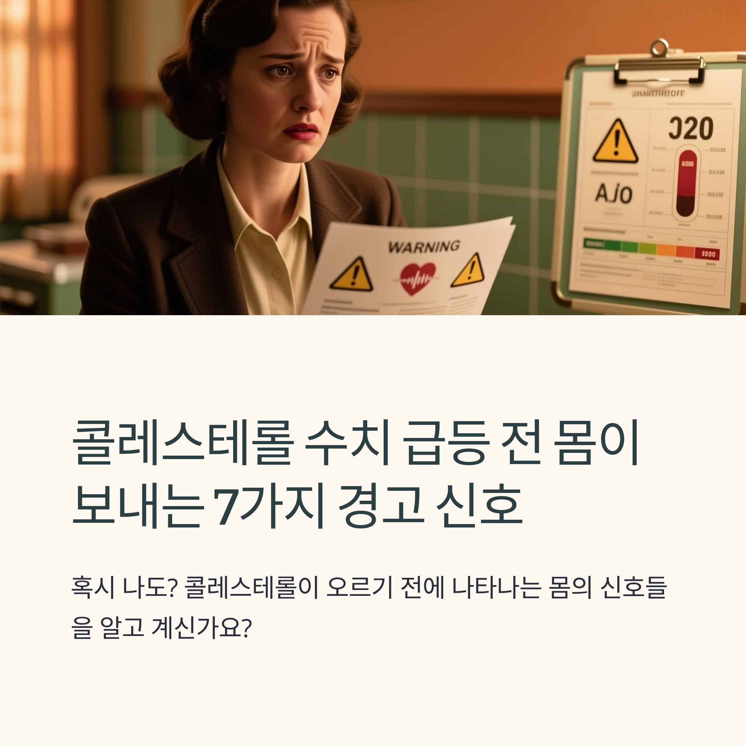 콜레스테롤 수치는 조용히 오르다가 어느 순간 건강을 위협하는 수준에 도달합니다. 하지만 몸은 미리 여러 가지 신호를 보내 경고해주고 있습니다. 이 글에서는 콜레스테롤 수치가 급등하기 전 몸이 보내는 주요 신호들을 정리하고, 이를 통해 조기 대응하는 방법까지 함께 알아보겠습니다.