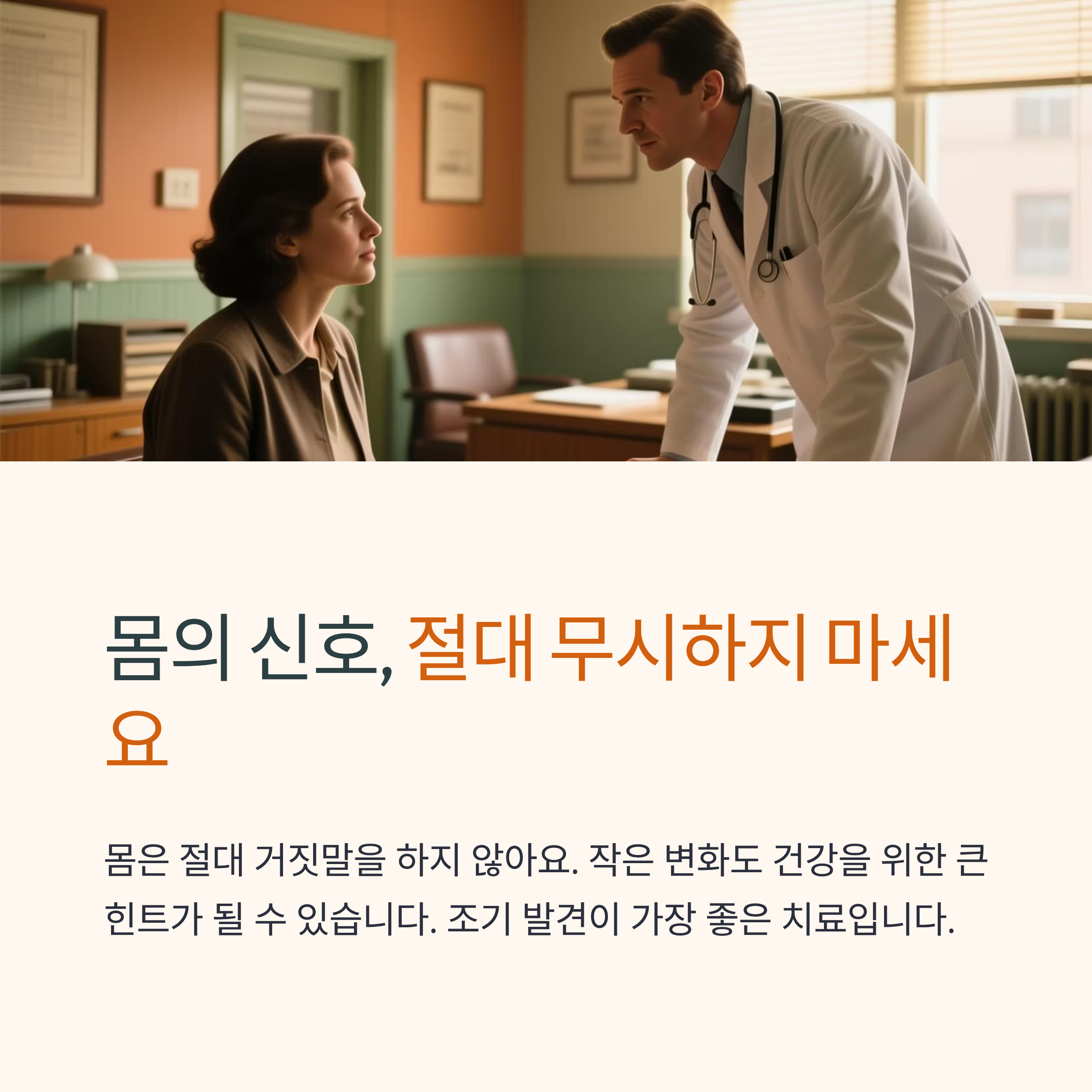 조기 발견이 가장 좋은 치료입니다. 오늘부터 몸의 신호에 귀 기울여 보세요.