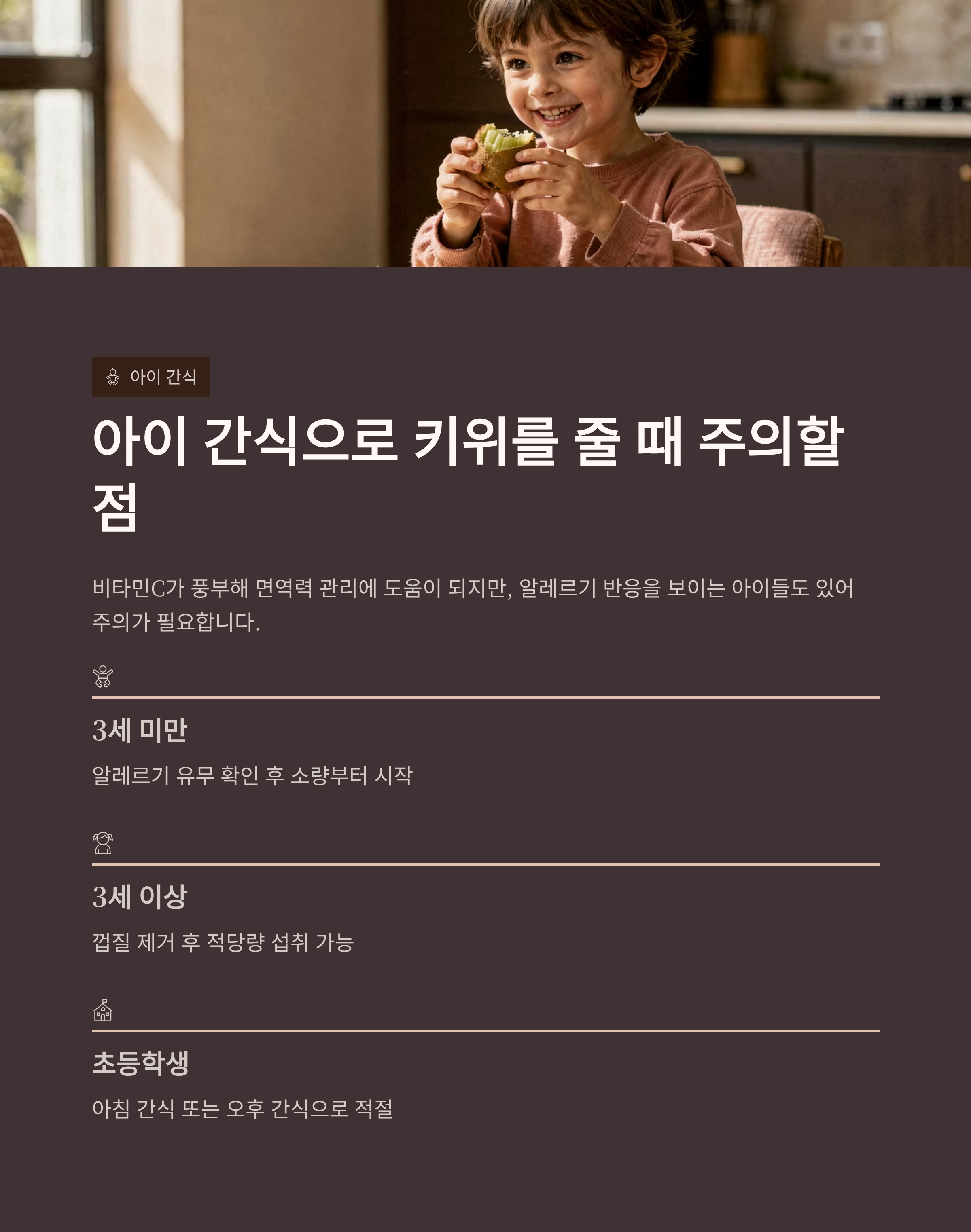 아이 간식으로 키위를 줄 때 주의할 점