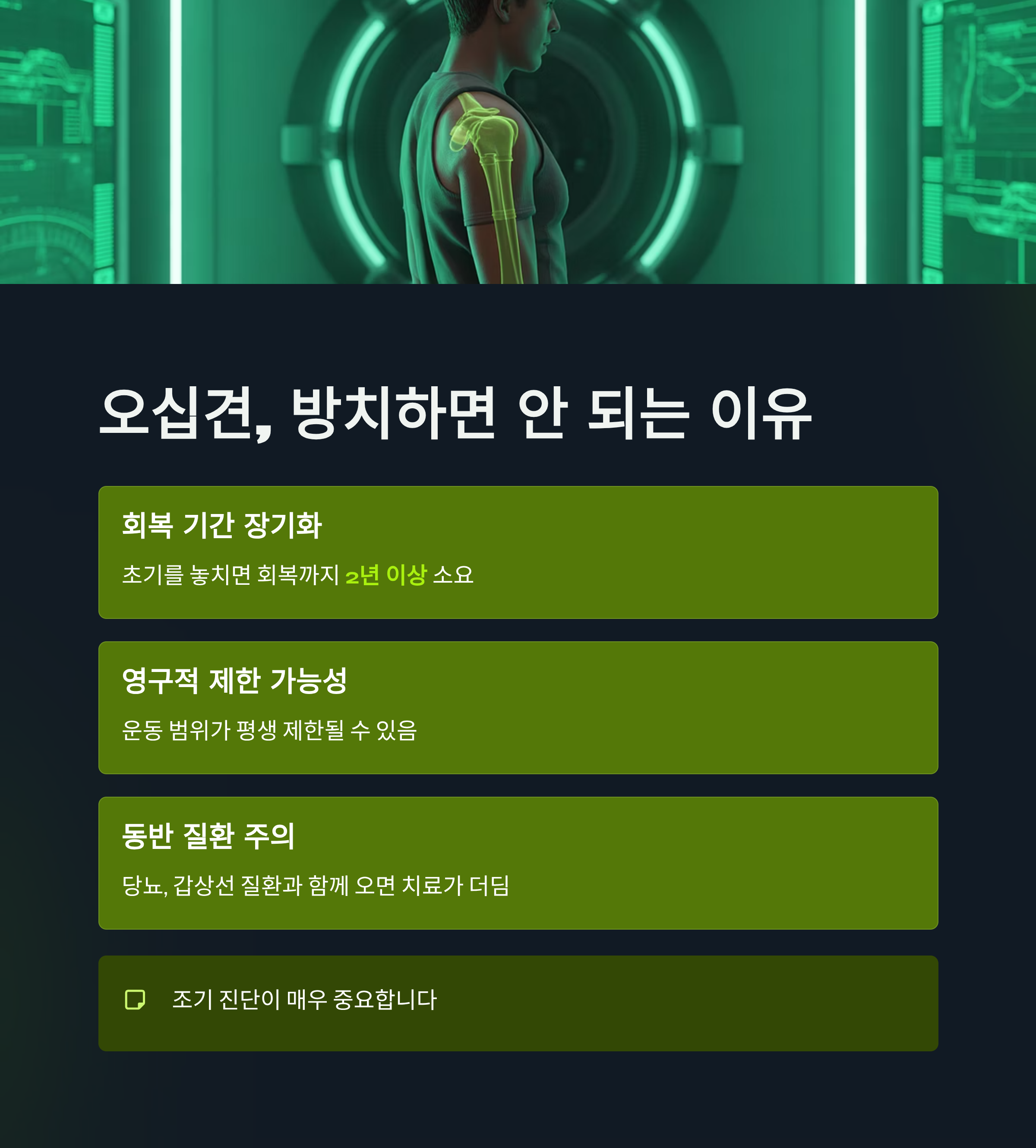 오십견, 흔히 50대에 잘 생긴다고 해서 붙은 이름이지만 실제로는 나이에 상관없이 발생할 수 있는 어깨 질환입니다. 초기에는 단순한 불편감에서 시작되지만, 점차 팔을 들거나 뒤로 돌리는 동작이 어려워지며 일상에 큰 제약을 주게 됩니다. 이 글에서는 오십견의 특징적인 증상과 운동 장애, 진단 기준, 그리고 최신 통계 자료를 통해 오십견을 조기에 의심하고 적절한 치료를 시작하는 데 도움이 될 정보를 정리해보았습니다.