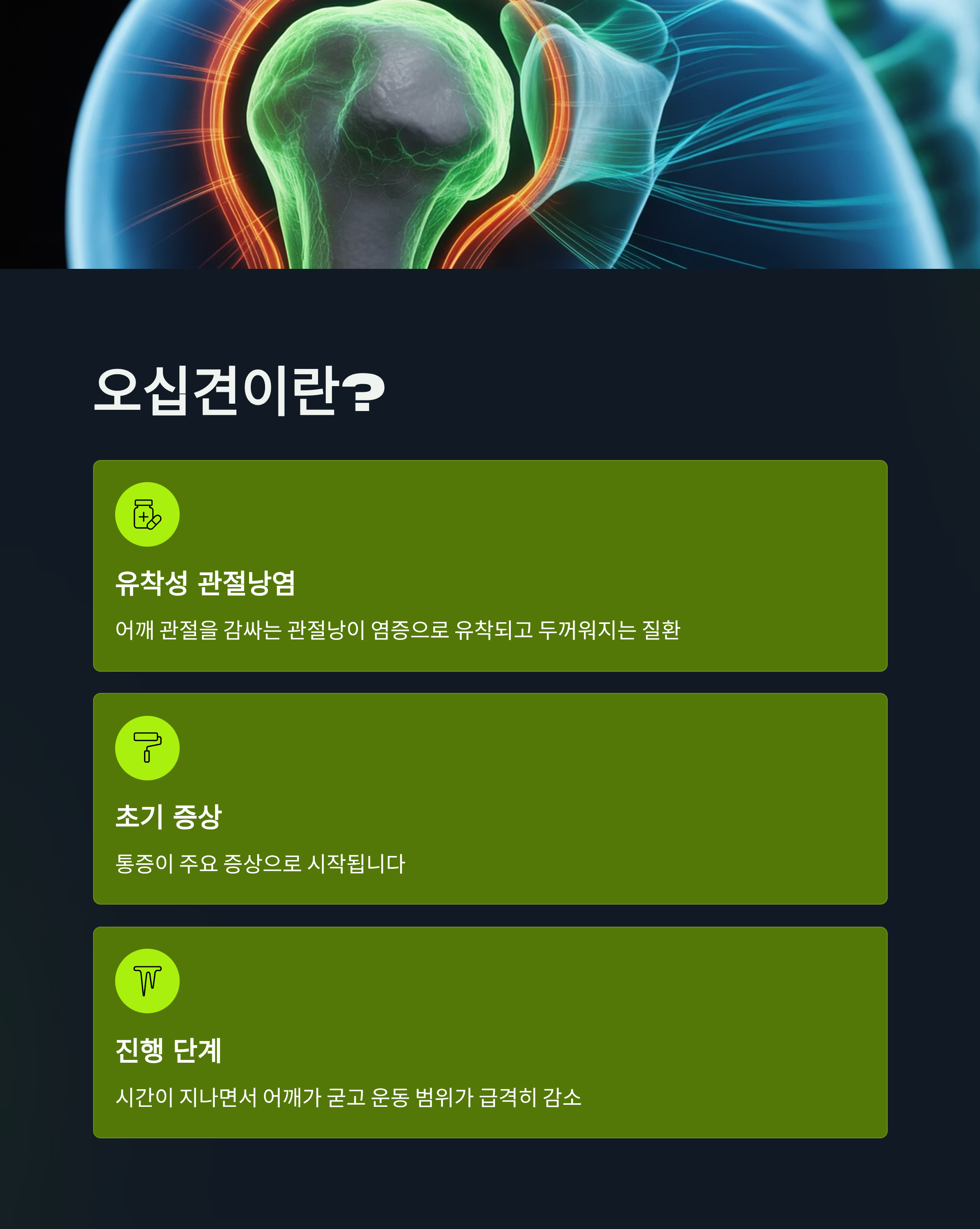 오십견은 단순한 어깨 통증이 아닙니다.