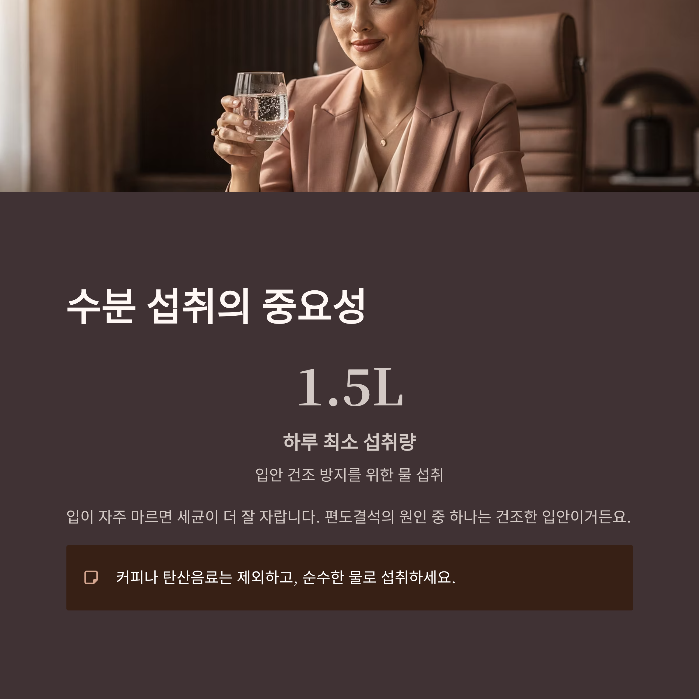 | 수분 충분히 섭취 | 입안 건조 방지 |