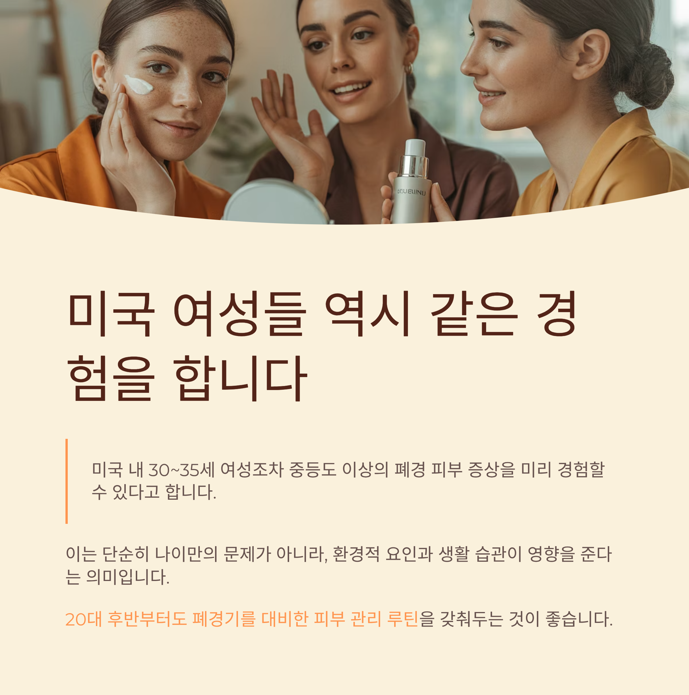 20대 후반부터도 폐경기를 대비한 피부 관리 루틴을 갖춰두는 것이 좋습니다.