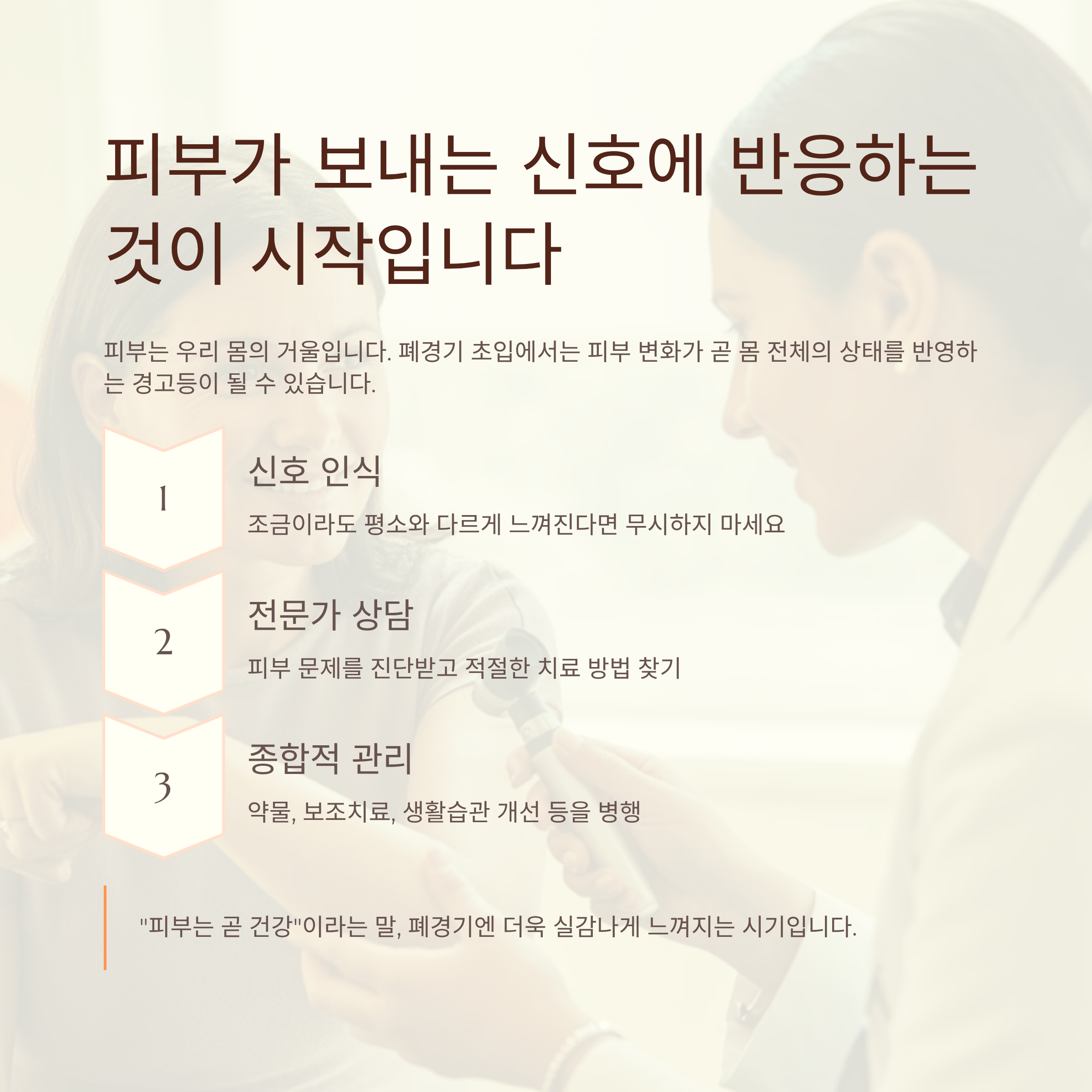우리가 지금 느끼고 있는 작은 건조함, 미세한 주름 하나도 몸이 말하는 신호일 수 있습니다.