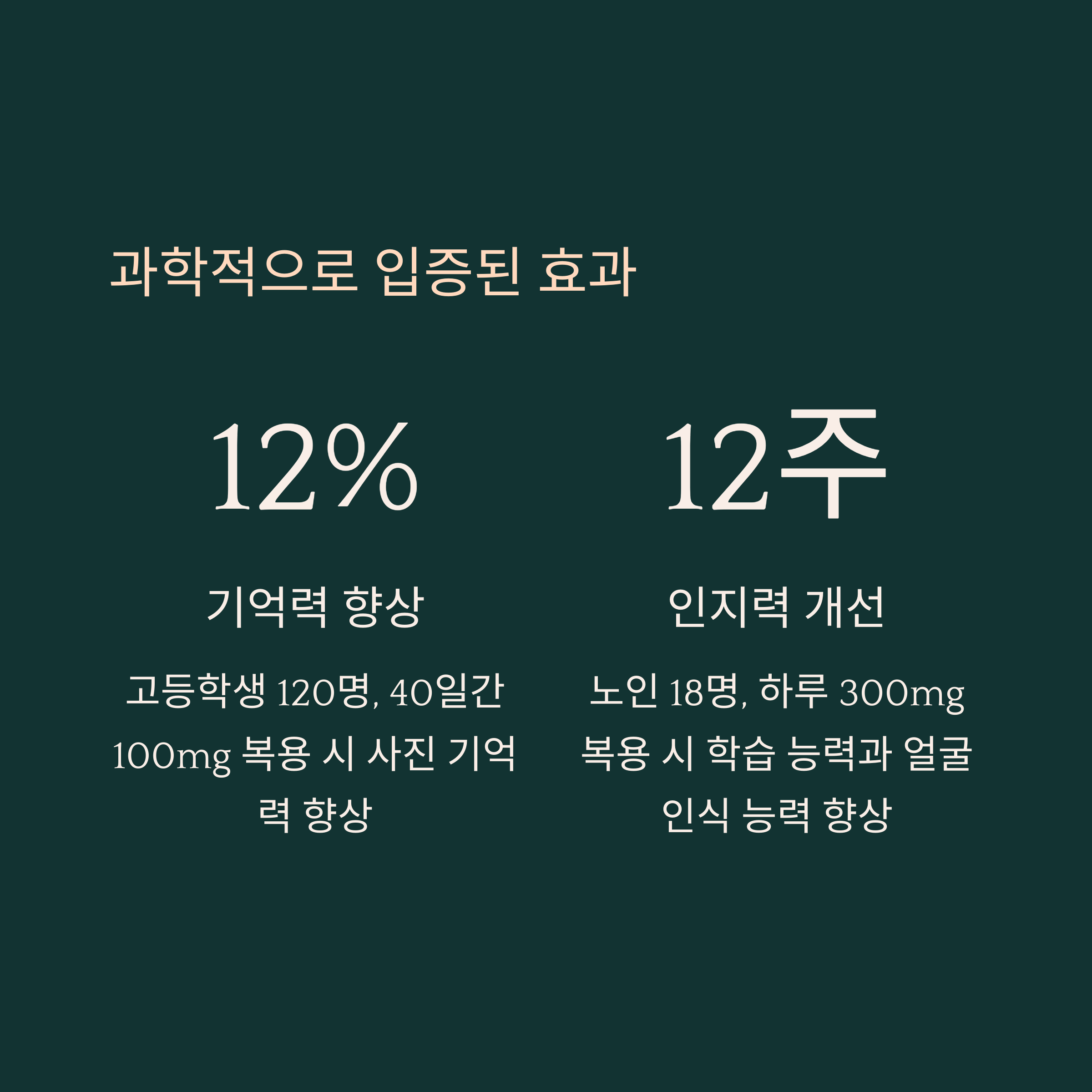 고등학생 120명 100mg/일, 40일 사진 기억력 12% 향상