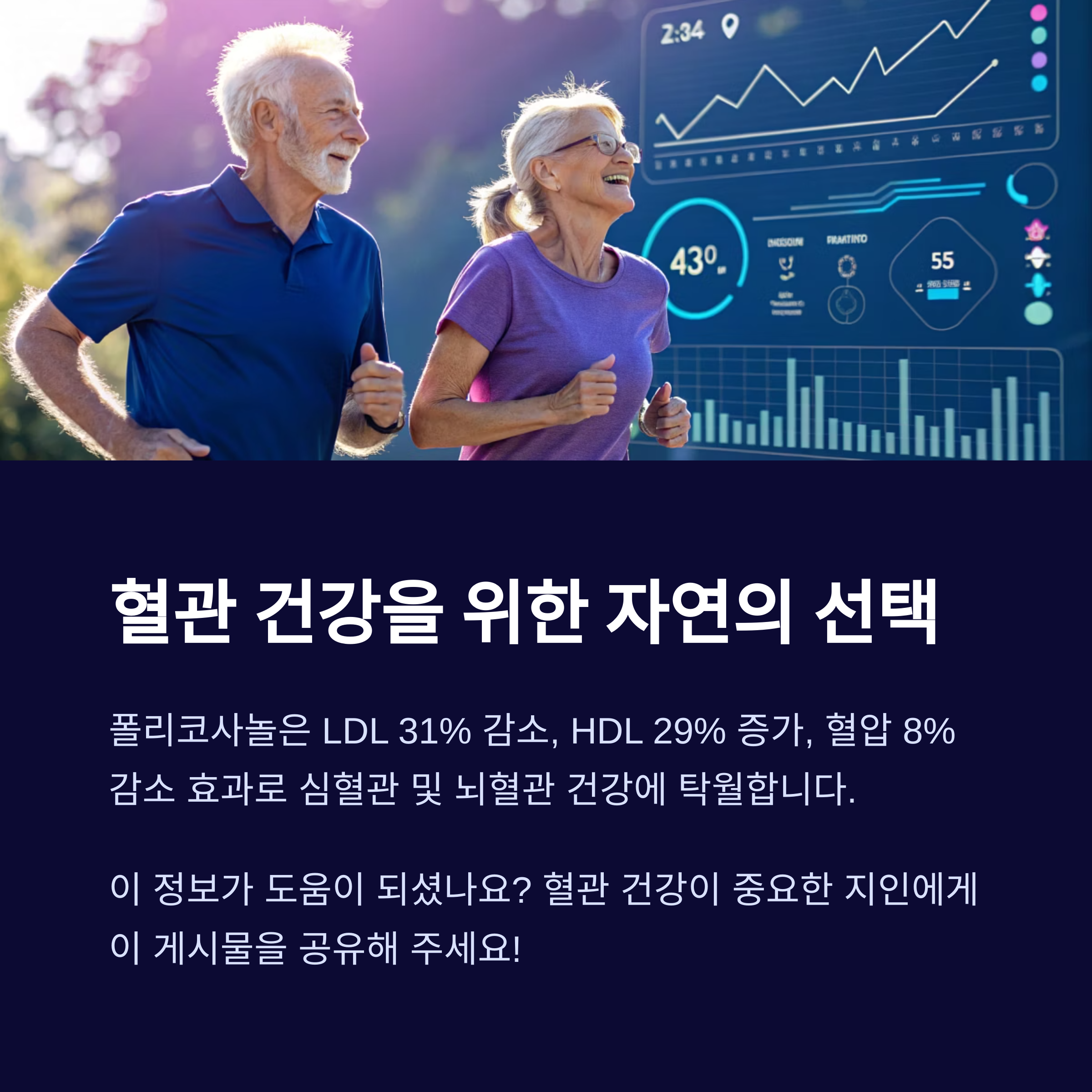 콜레스테롤 수치 개선부터 뇌혈관 보호까지, 폴리코사놀의 혈관 건강 효과는 과학적으로 검증된 바 있습니다.