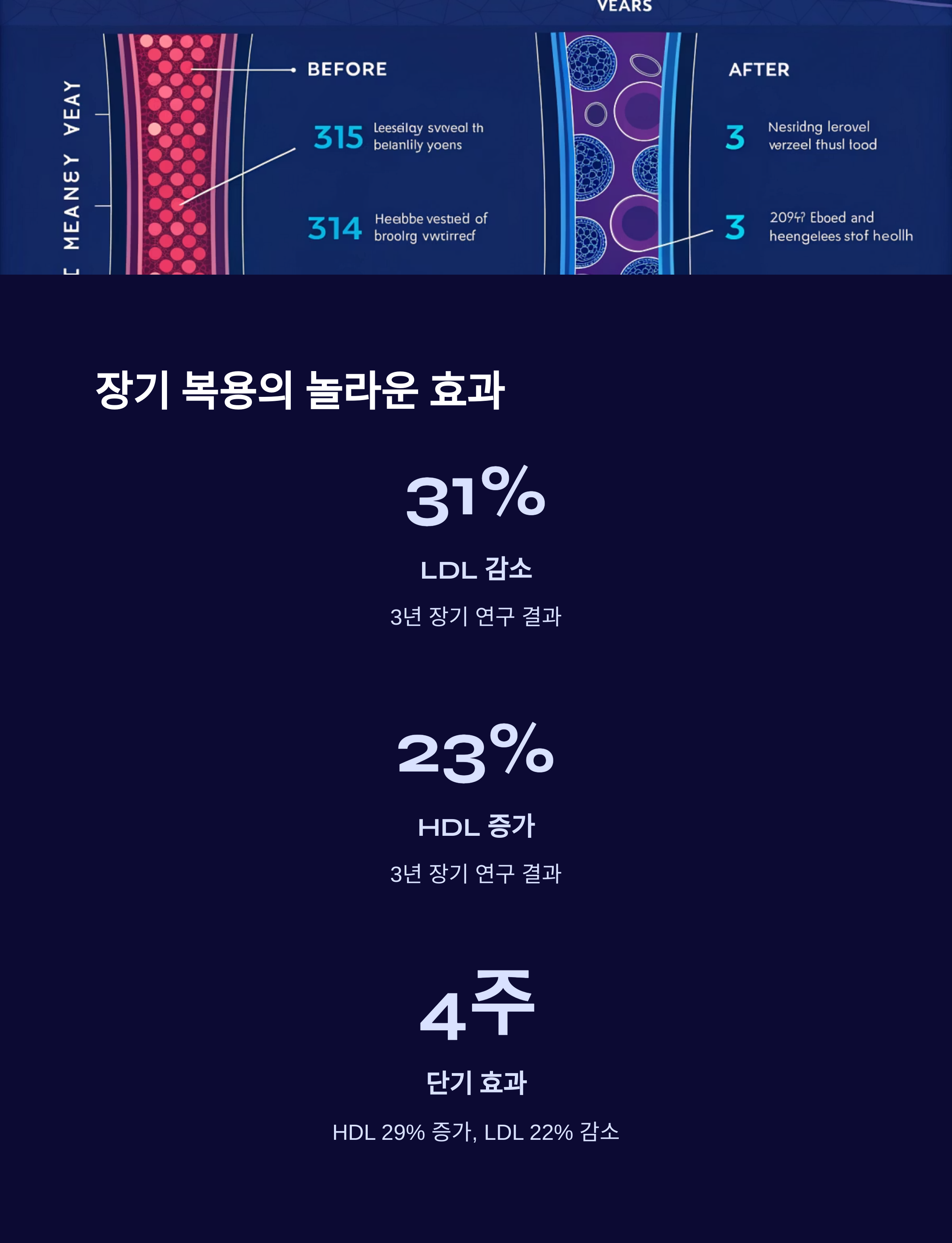 | LDL 감소 | 3년 장기 연구 | 31% 감소 |