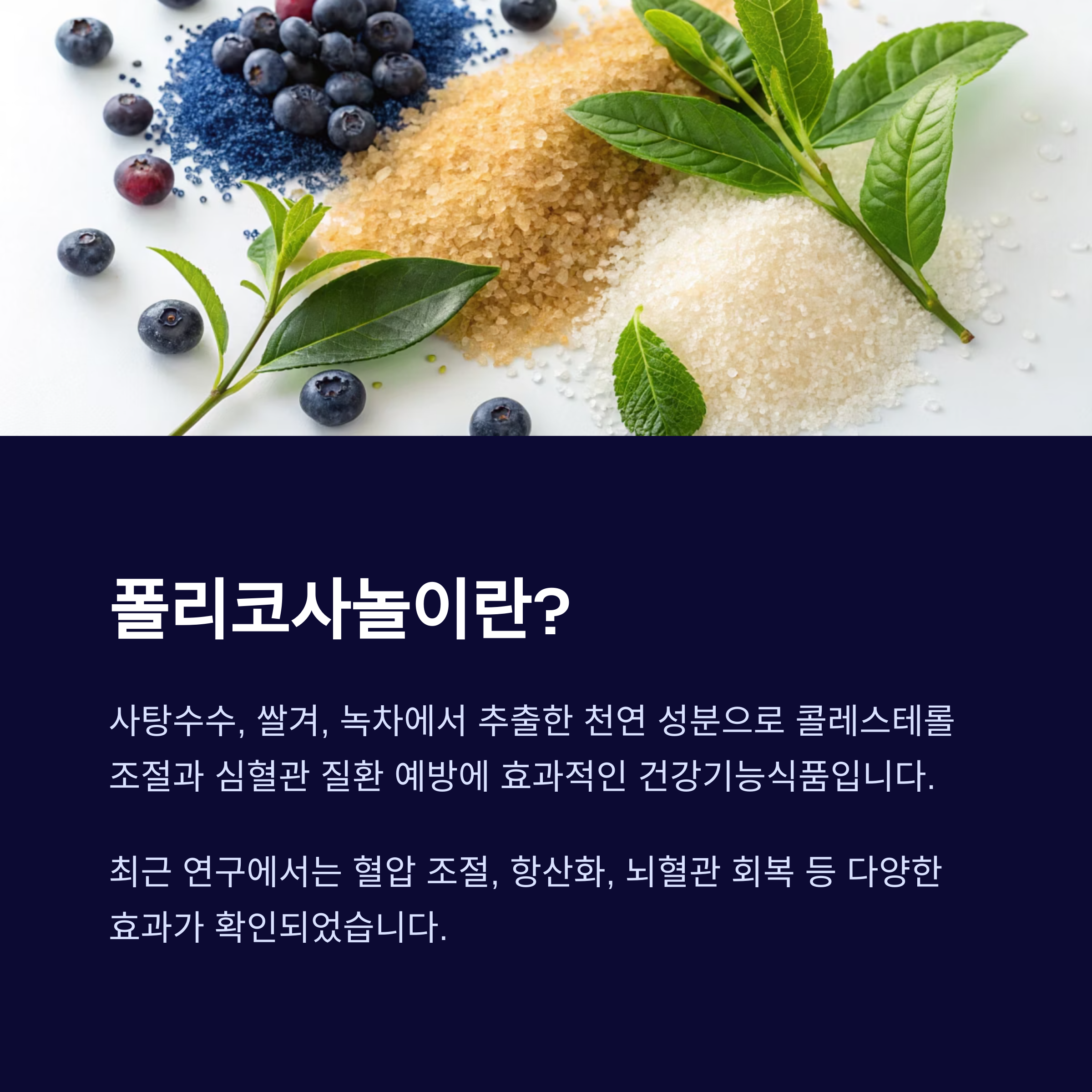 폴리코사놀은 혈관 건강 관리에 탁월한 자연 유래 성분입니다.