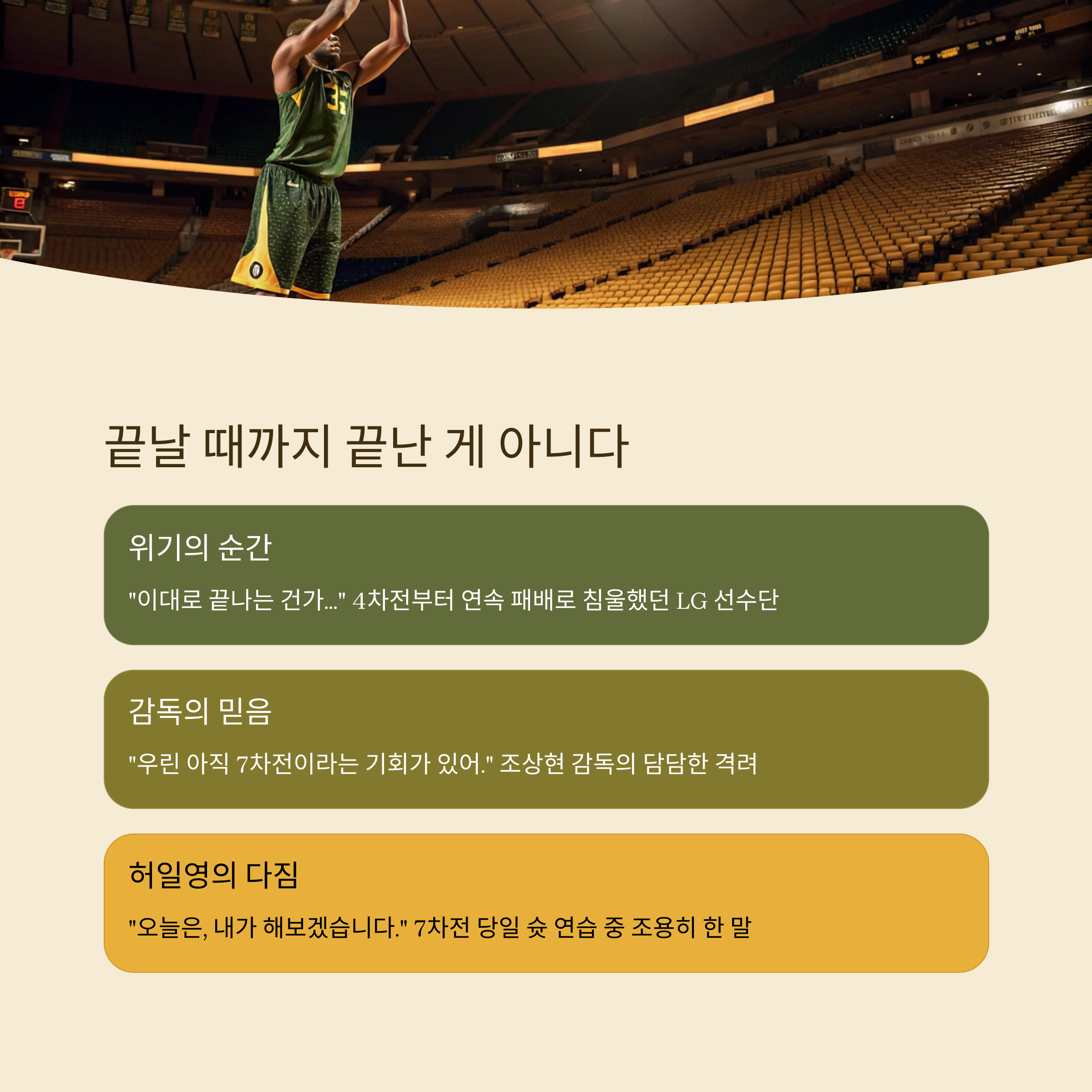 7차전 당일, 허일영은 슛 연습 중 조용히 말했습니다.