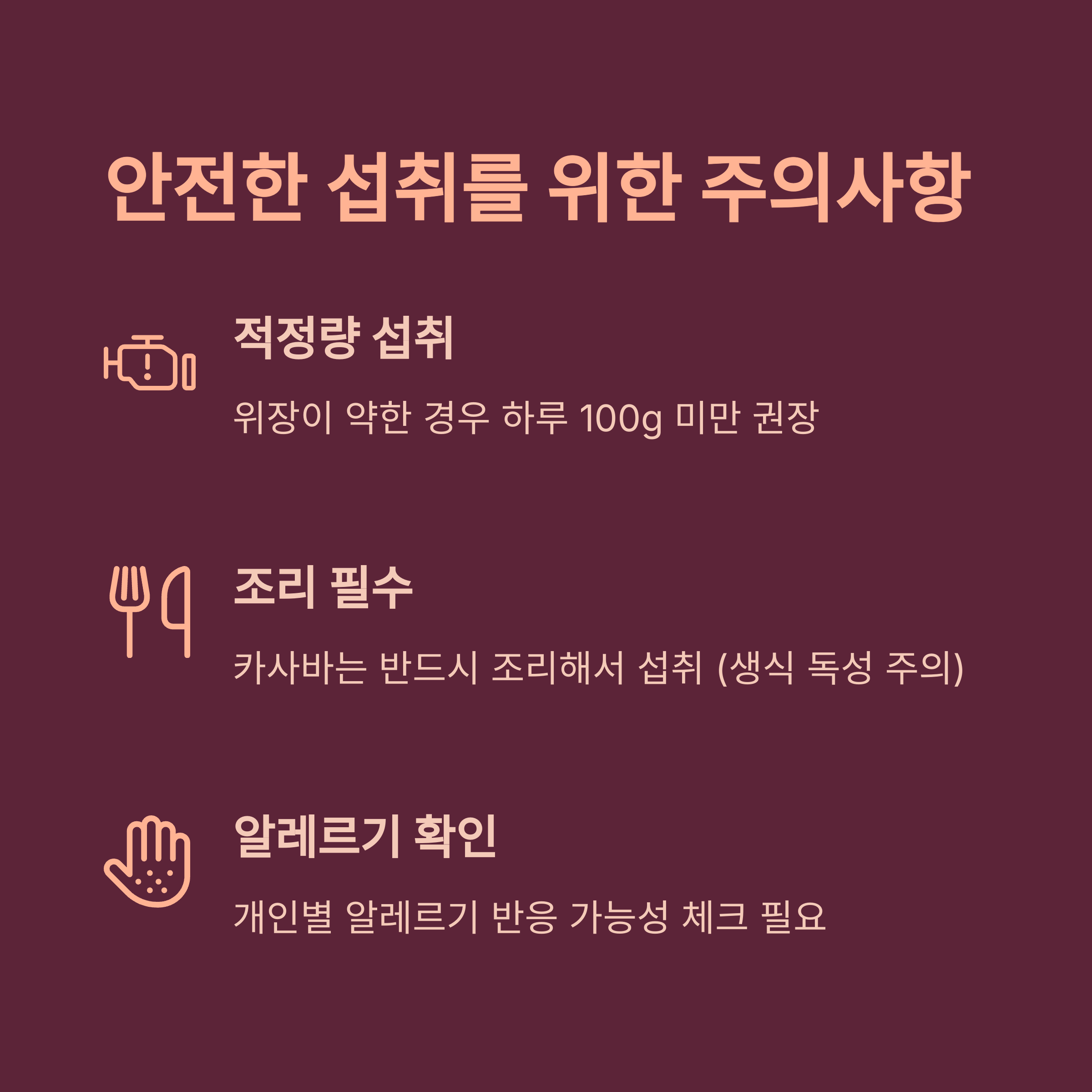 지카마는 생으로 먹는 것이 일반적이지만, 알레르기 반응이 있는 분은 주의가 필요합니다.