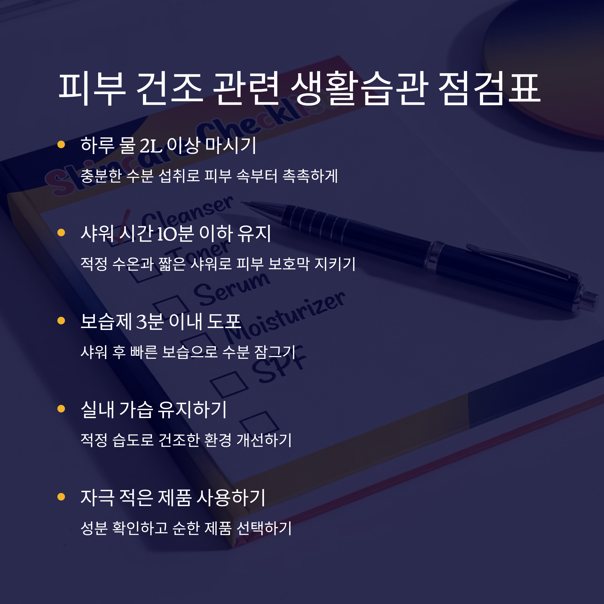피부 건조 관련 생활습관 점검표