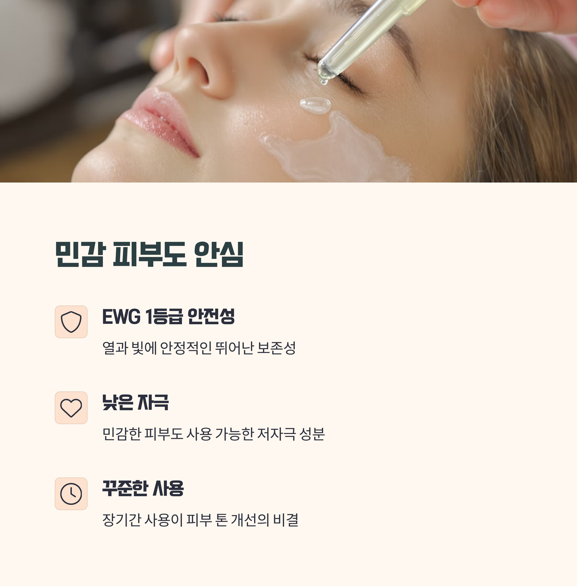 게다가 미국 EWG(Environmental Working Group)에서 1등급 안전성 성분으로 인증받은 나이아신아마이드는, 피부 장벽을 튼튼하게 해주는 효과까지 있어요. 민감한 피부도 안심하고 사용할 수 있는 건 큰 장점이에요.