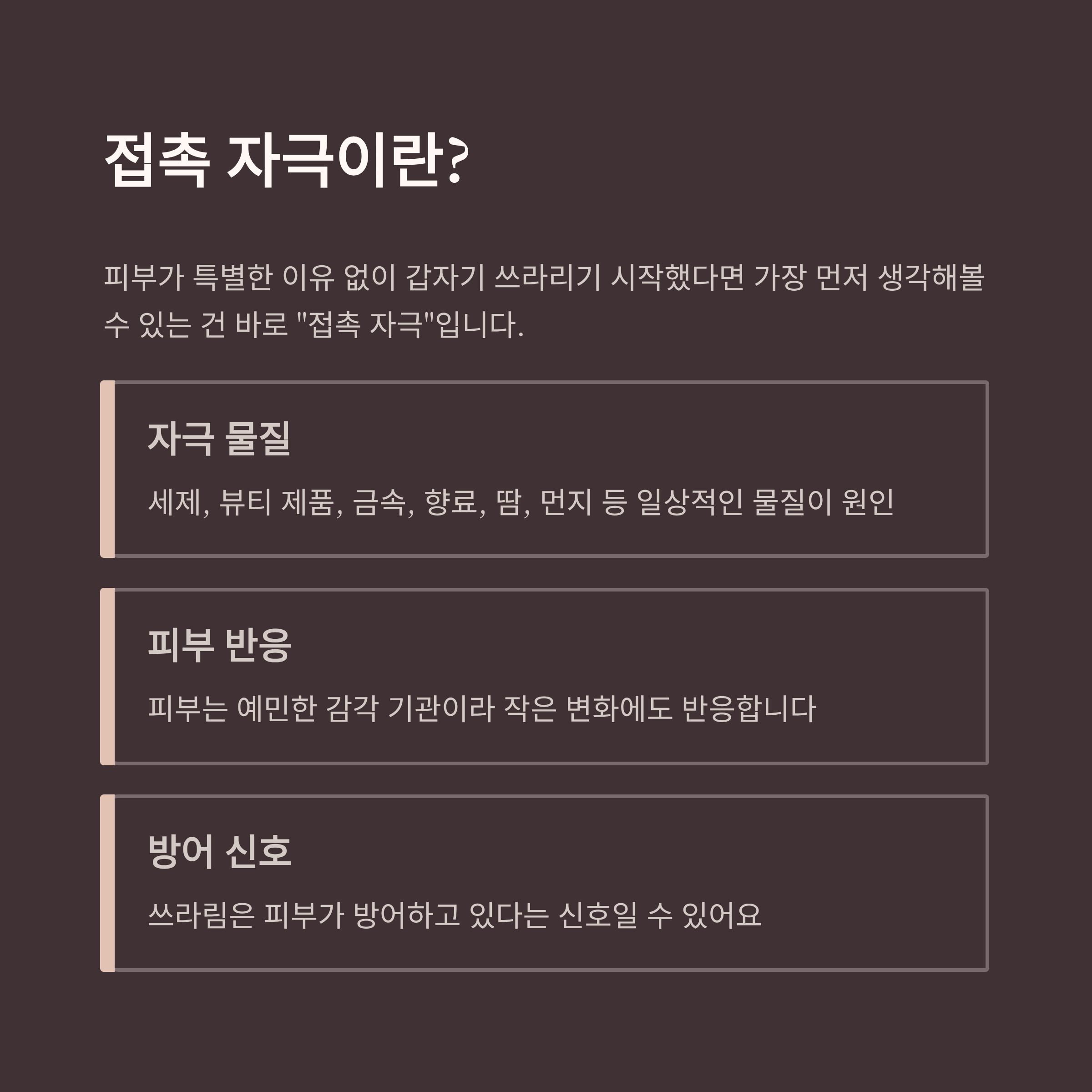 아무 이유 없이 따갑고 쓰라린 피부, 혹시 접촉 자극 때문일까요?
