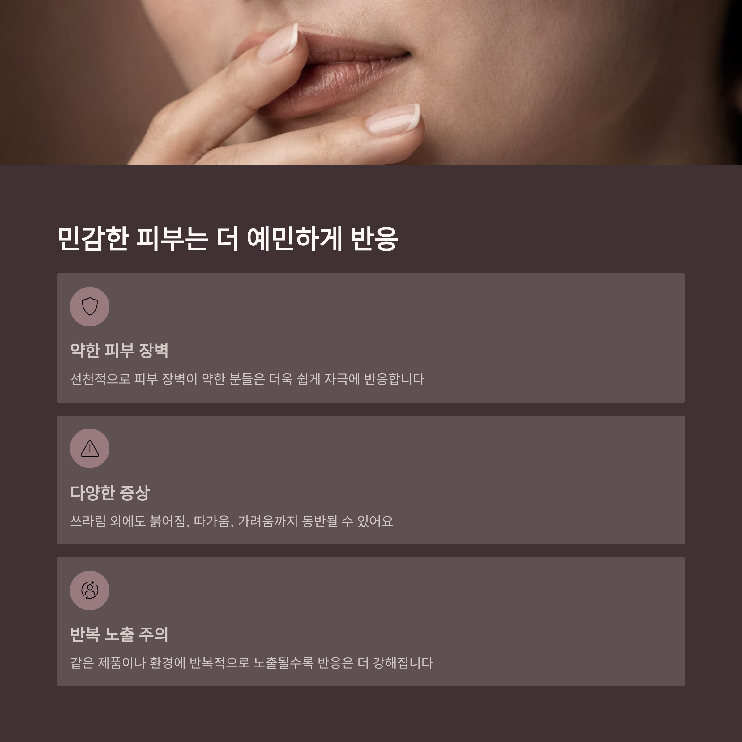 선천적으로 피부 장벽이 약한 분들이나 평소 건조함을 자주 느끼는 분들은 더욱 쉽게 자극에 반응합니다.
