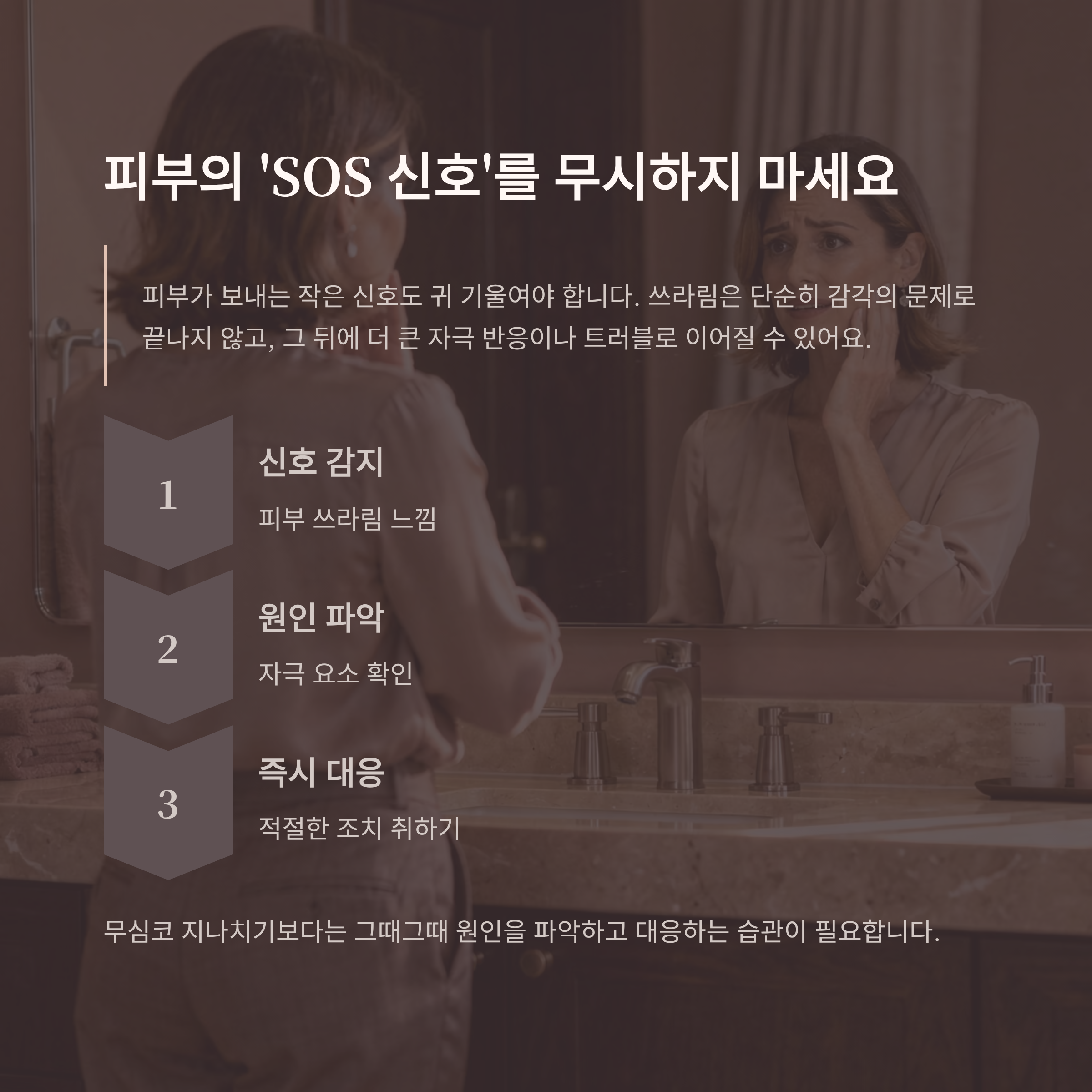 피부가 보내는 작은 신호도 귀 기울여야 합니다. 쓰라림은 단순히 감각의 문제로 끝나지 않고, 그 뒤에 더 큰 자극 반응이나 트러블로 이어질 수 있어요.
