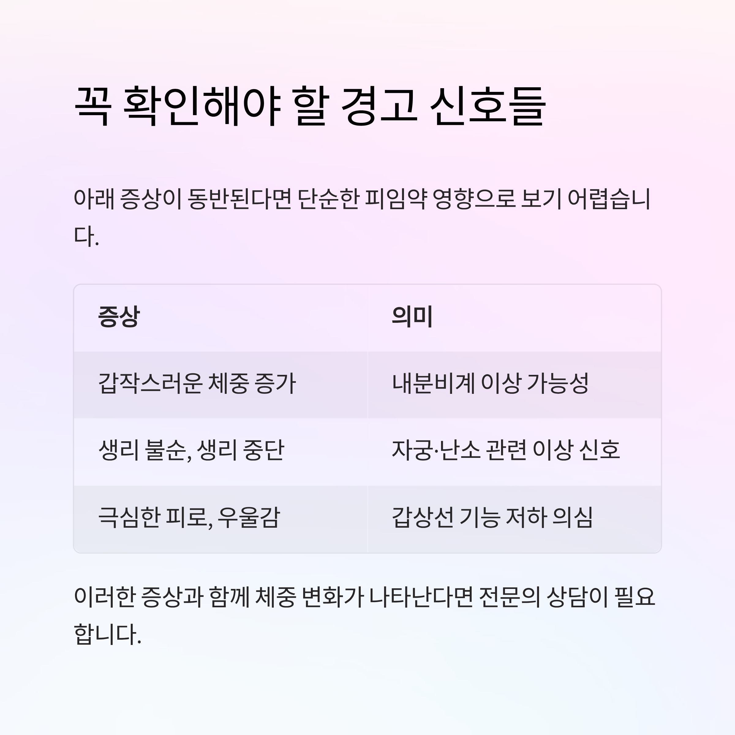 | 갑작스러운 체중 증가 | 내분비계 이상 가능성 |
