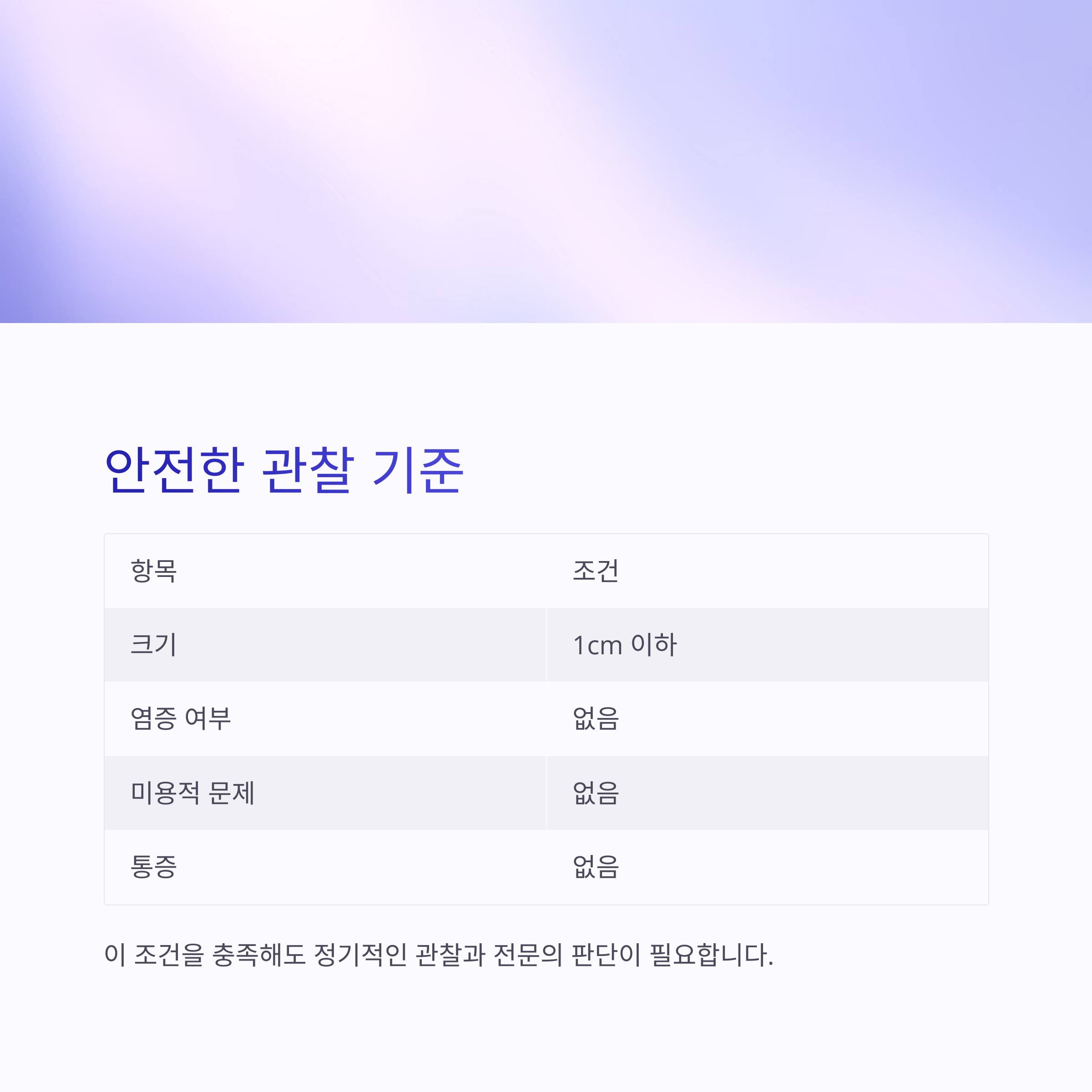 특히 크기가 커지거나 염증이 동반되기 전에 적절한 시점에서 치료를 받는 것이 가장 안전합니다.