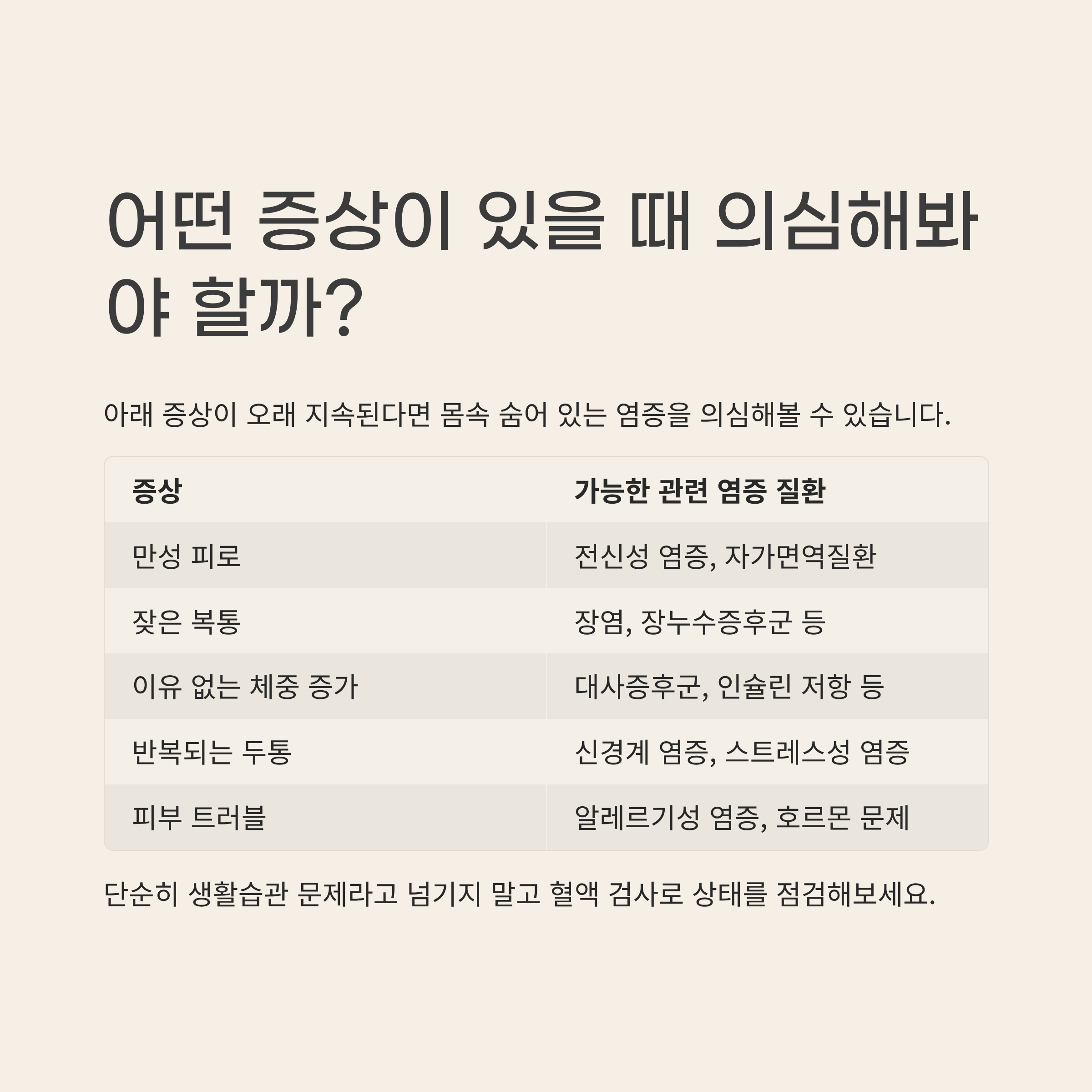 몸속에 숨어 있는 염증을 의심해볼 수 있어요.