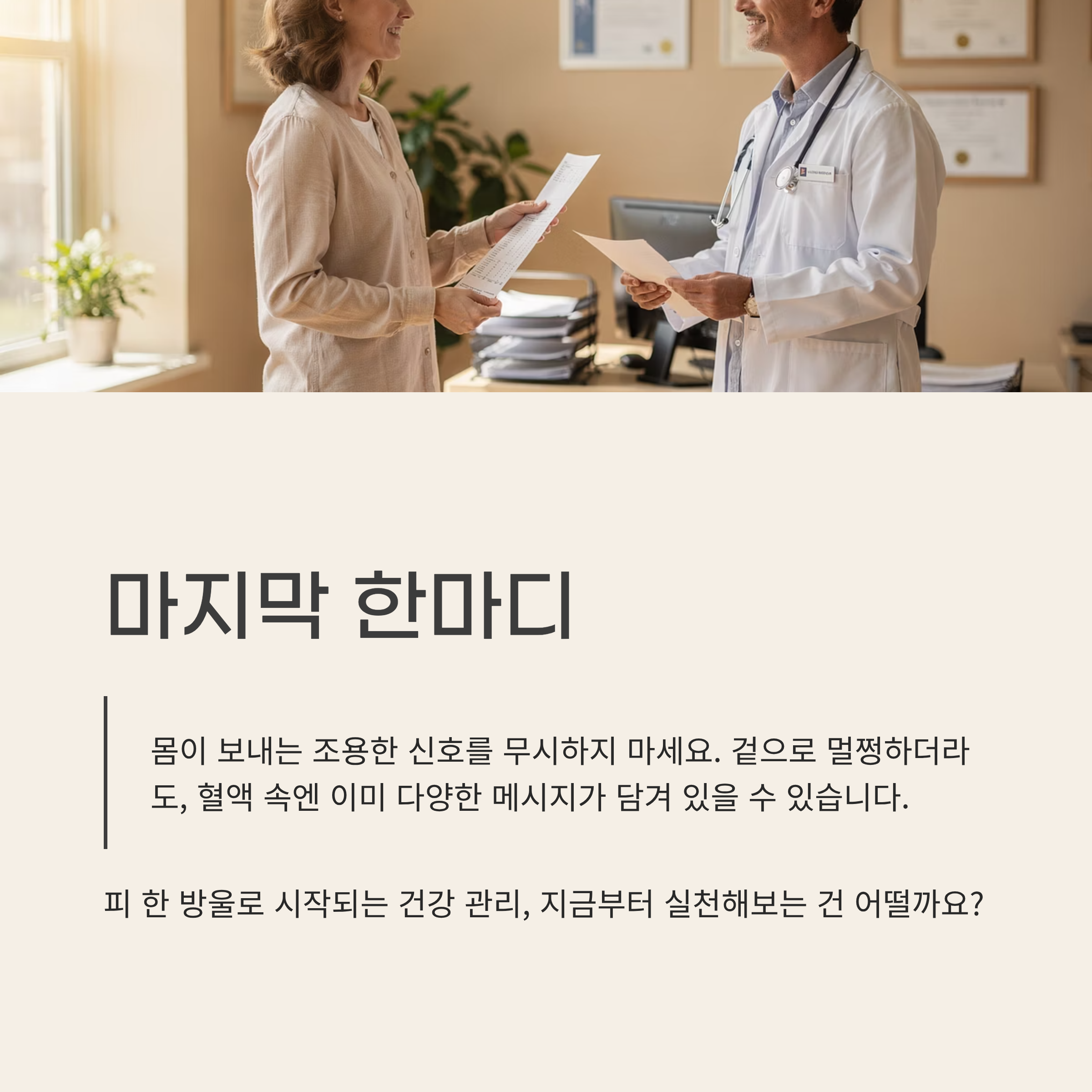 겉으로 멀쩡하더라도, 혈액 속엔 이미 다양한 메시지가 담겨 있을 수 있습니다.