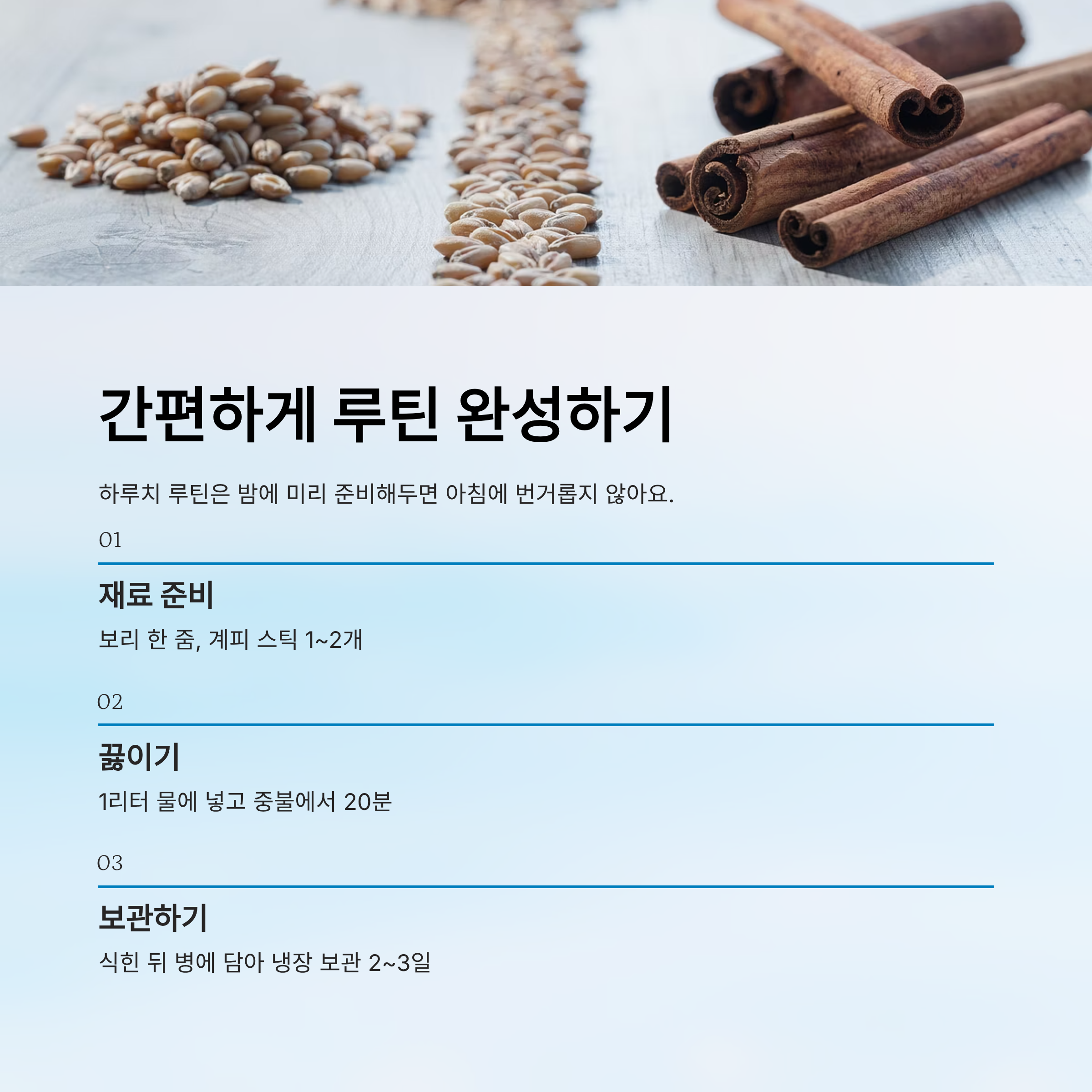 미지근한 온도로 데운 보리차+계피물이 이 루틴의 주인공입니다.