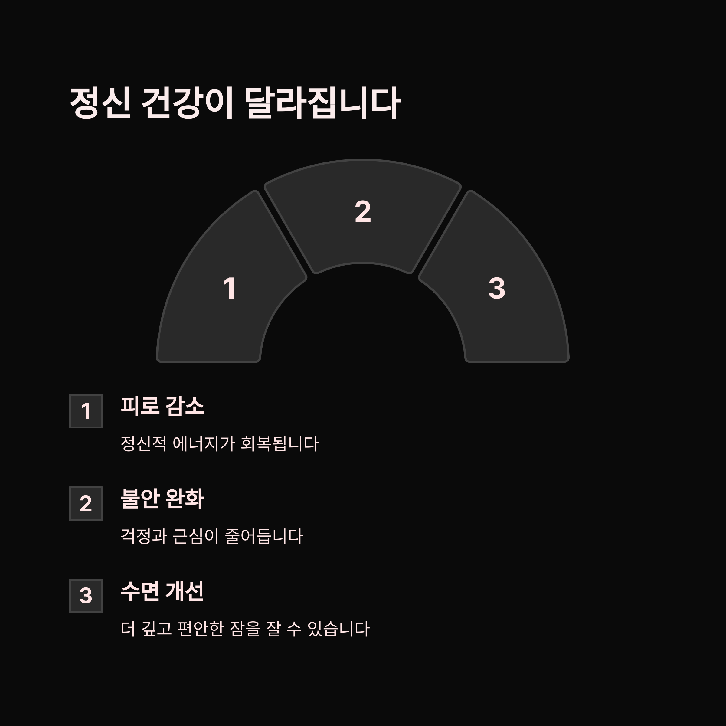 | 스트레스 해소 | 집중력 향상 | 정신 건강 |