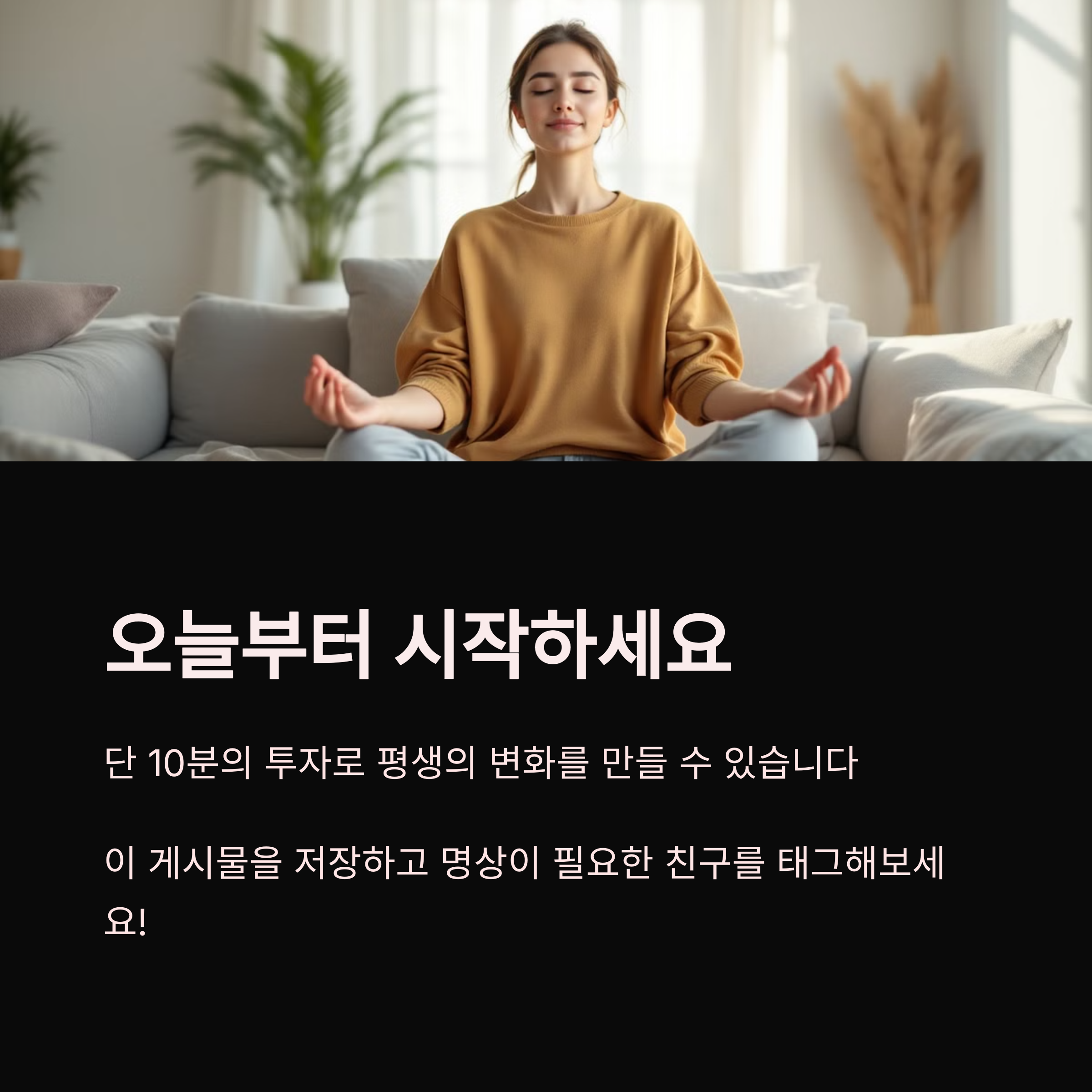 하루 10분 명상은 작은 투자로 큰 효과를 얻을 수 있는 방법입니다. 명상을 통해 마음의 평화를 찾고, 스트레스를 줄이며, 집중력을 높이는 등의 긍정적인 변화를 경험할 수 있습니다. 지속적인 실천이 중요한 만큼, 하루 10분의 명상을 꾸준히 실천하는 것이 중요합니다. 그 시작이 바로 오늘일 수 있습니다.