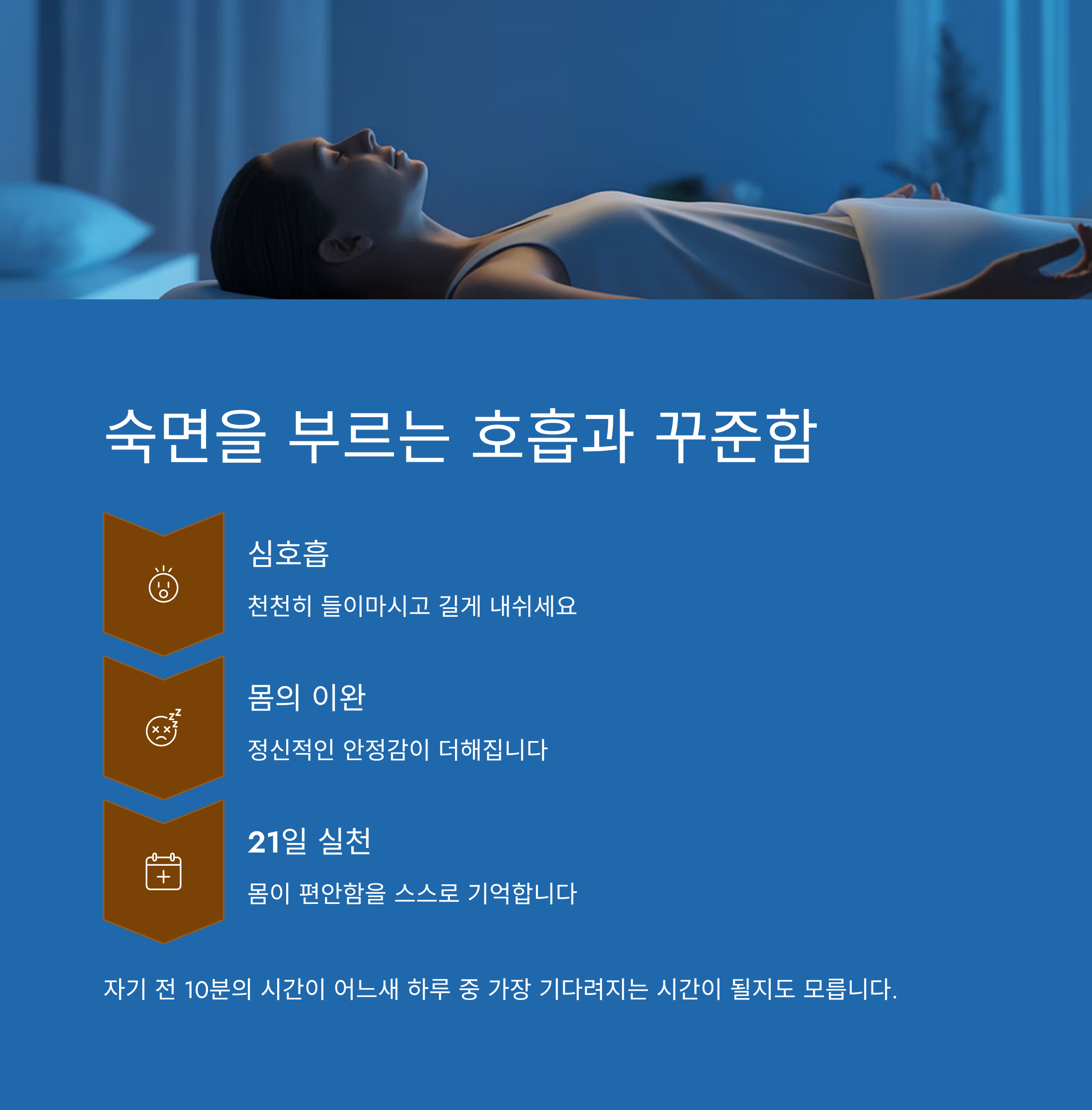 이 루틴을 최소 21일 동안 꾸준히 실천하면, 몸이 ‘편안함’을 스스로 기억하게 됩니다.