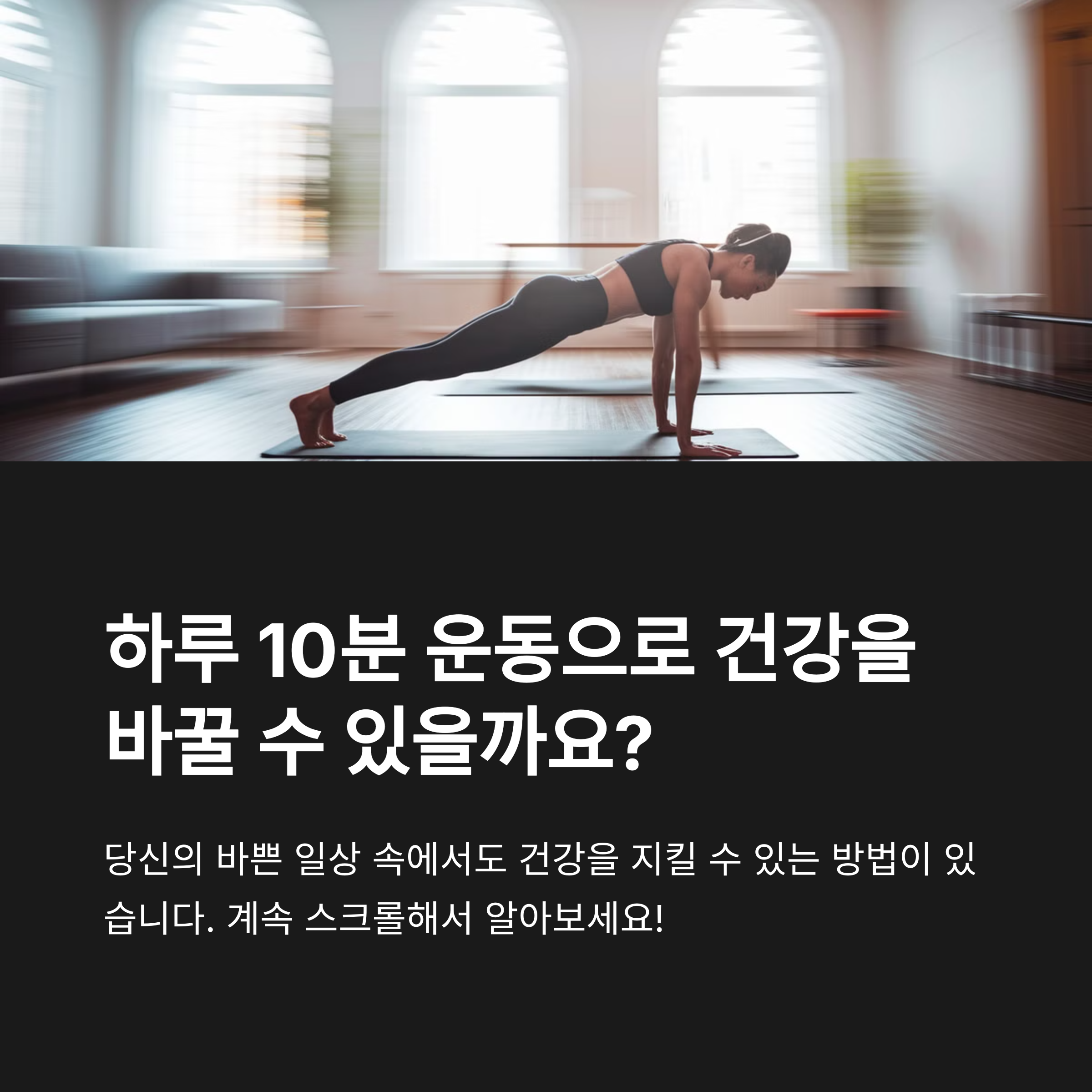 이 팁들을 활용하면 10분 운동이 단순한 몸풀기가 아니라, 건강을 지키는 강력한 도구가 될 수 있습니다.