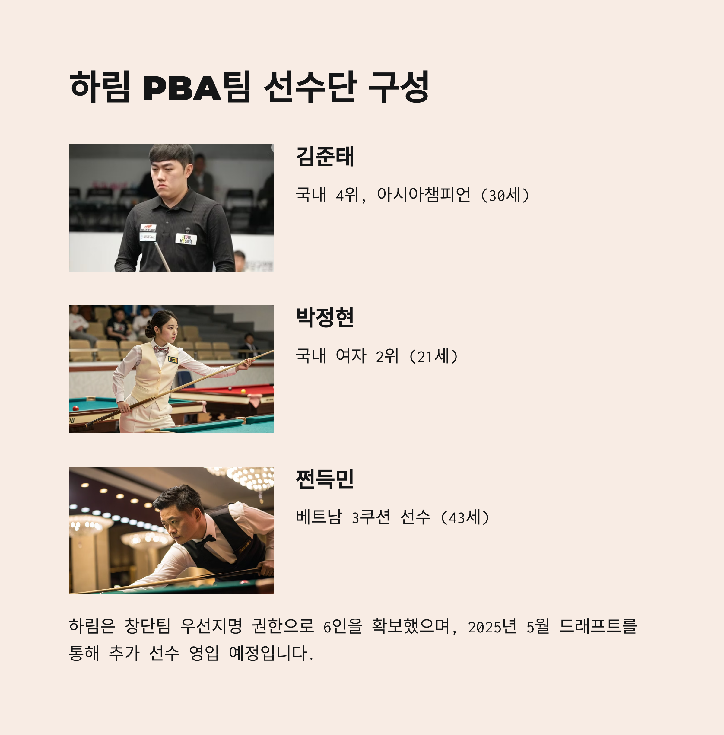 2025년, 26년 시즌 하림 PBA팀 선수단 구성