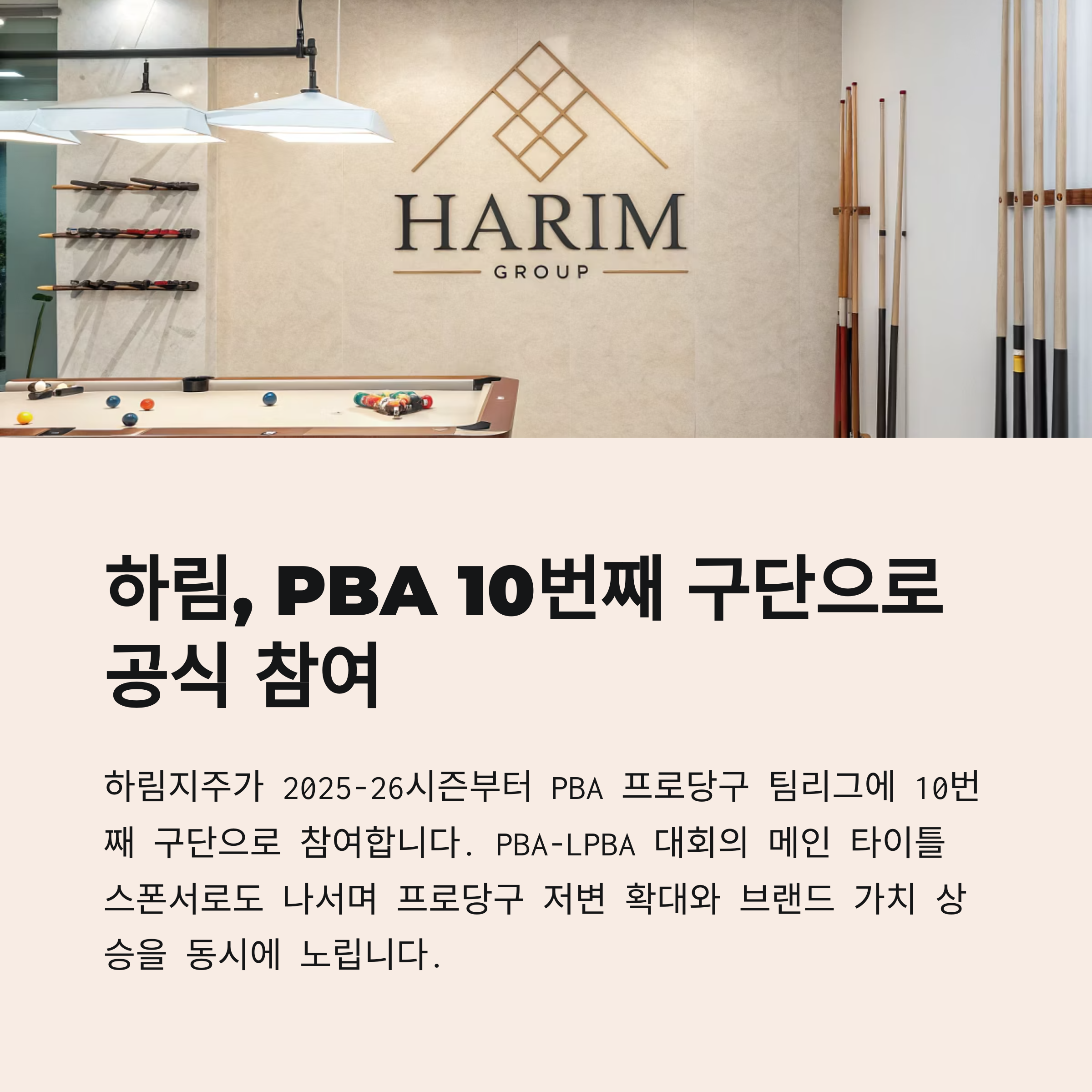 하림지주가 2025-26시즌부터 PBA 프로당구 팀리그에 10번째 구단으로 공식 참여하면서