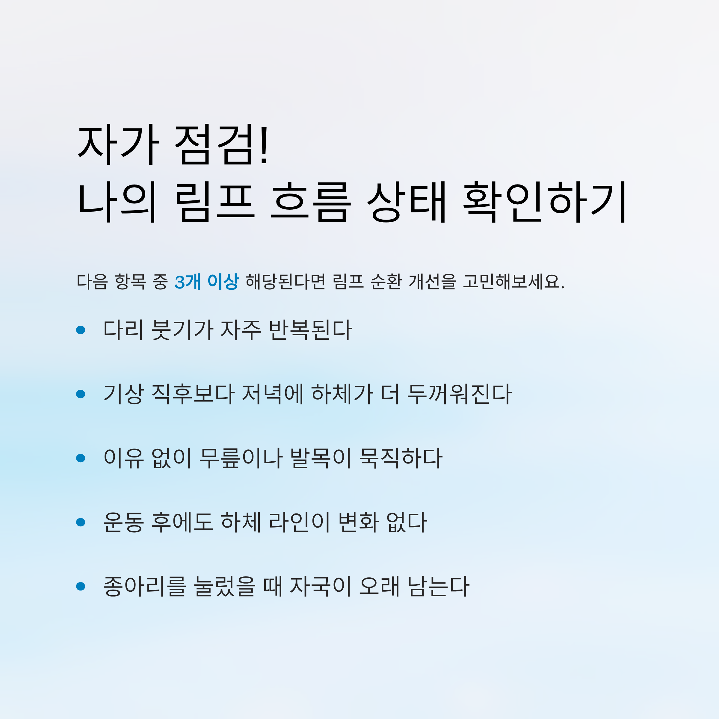 다음 항목 중 3개 이상 해당된다면 림프 순환 개선을 고민해보세요.