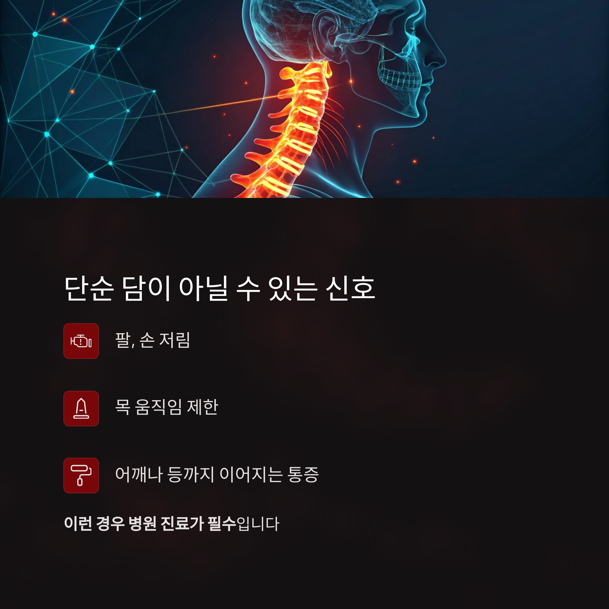 경추 디스크, 일자목, 거북목 등 구조적 문제를 의심해야 합니다