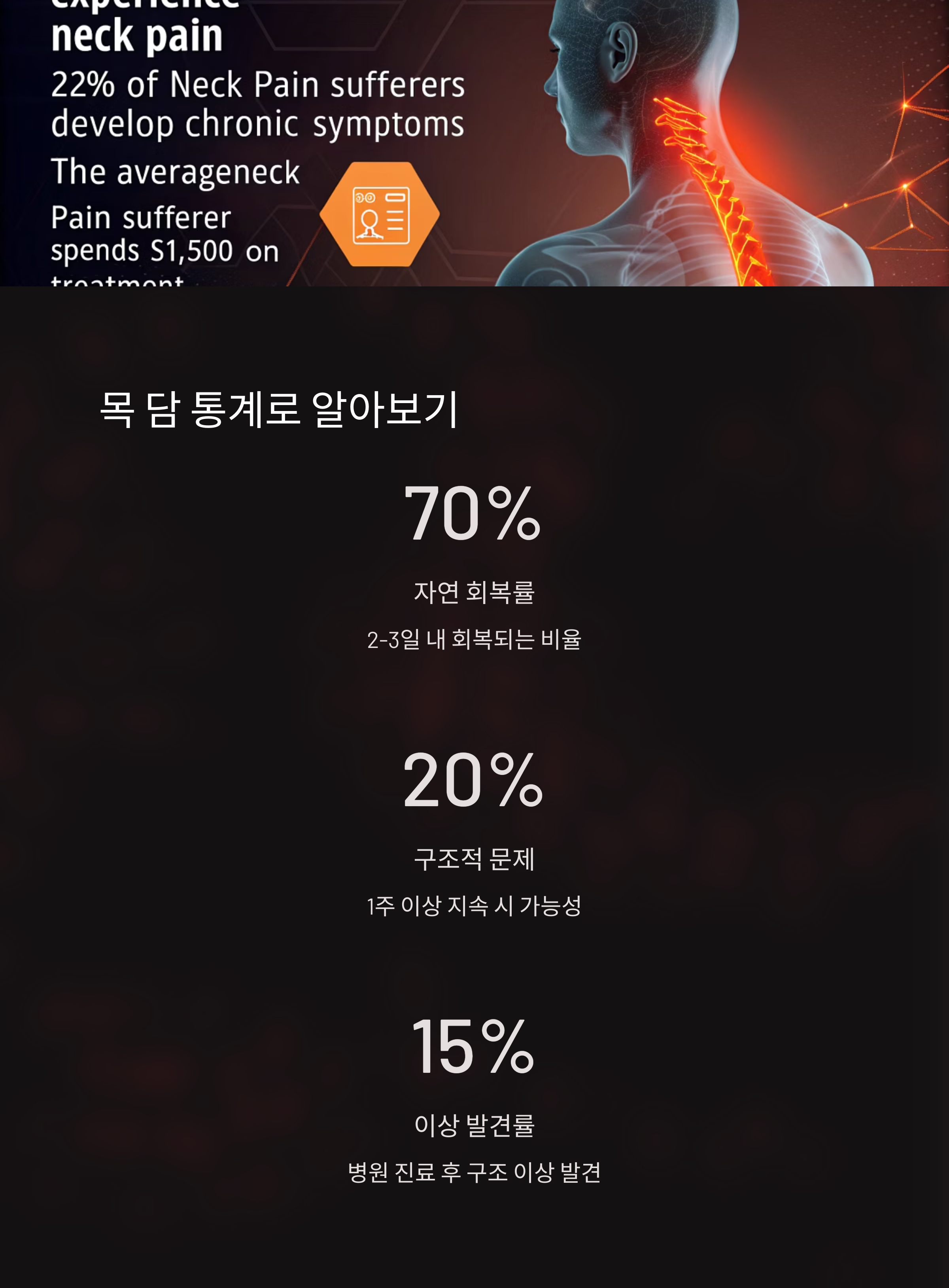 성인의 약 60%에서 80%가 일생에 한 번 이상 목 담 증상을 경험합니다
