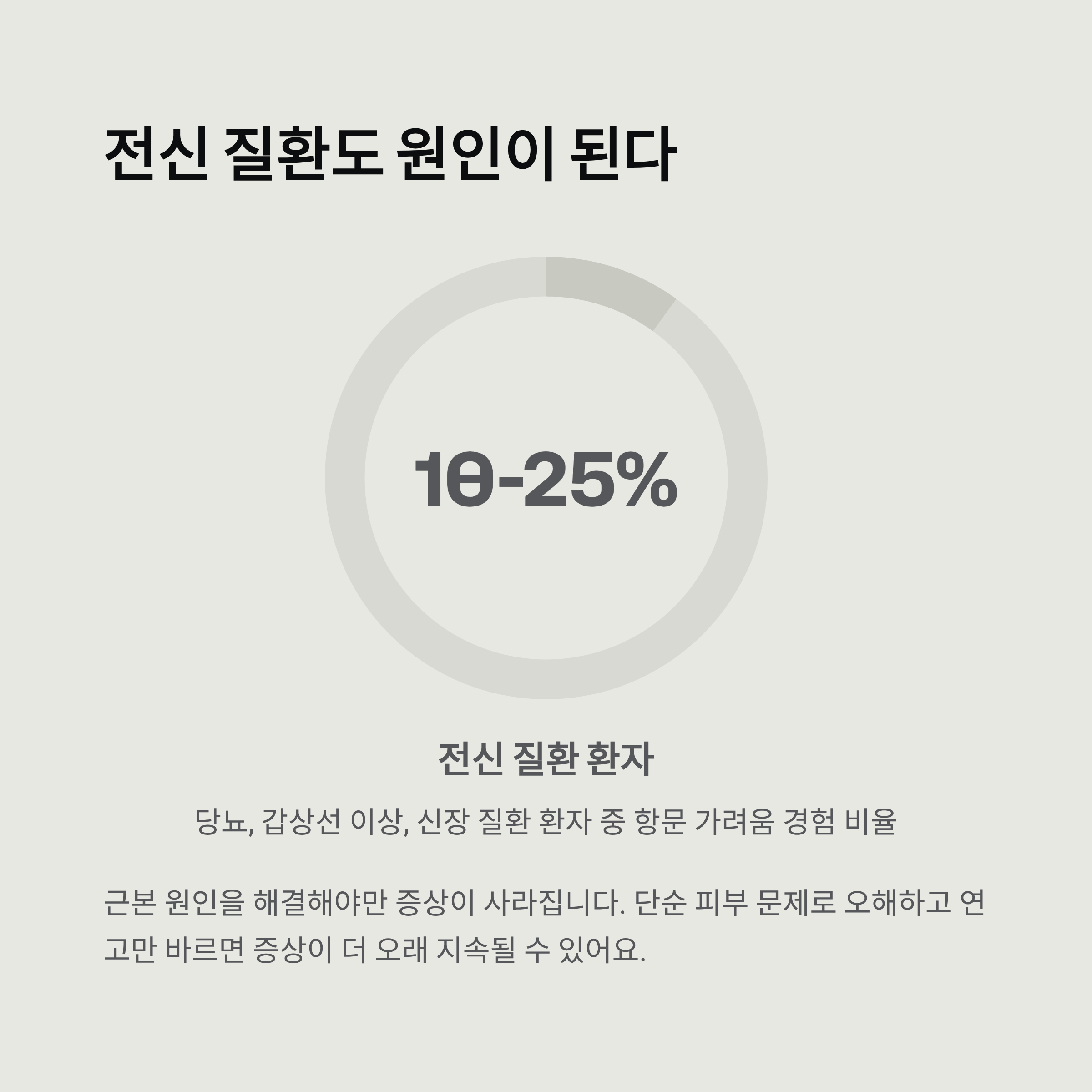 단순 피부 문제로 오해하고 연고만 바르는 것은 증상만 더 오래 끌 수 있습니다.
