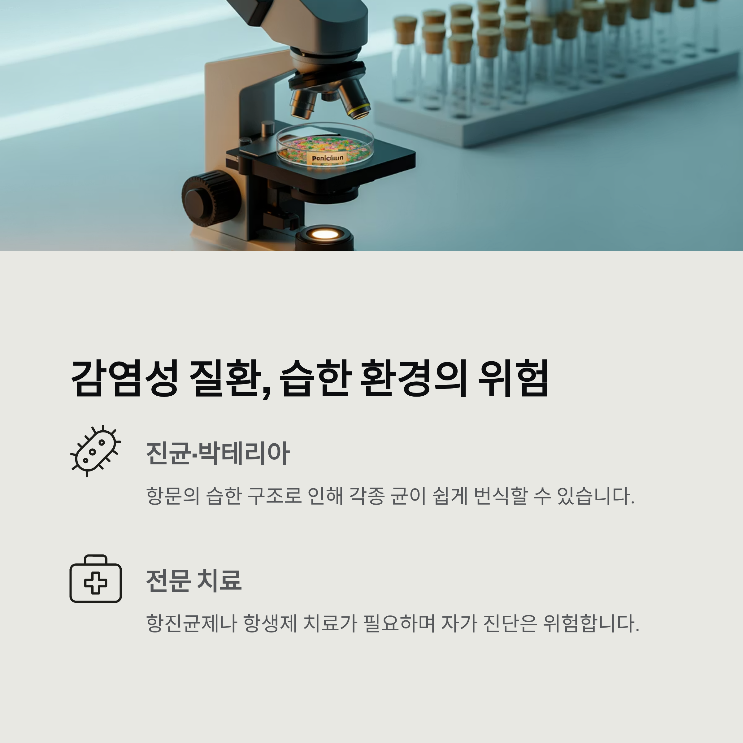 이때는 항진균제나 항생제 치료가 필요하며, 자가 진단보다는 전문의 진료가 필수입니다.