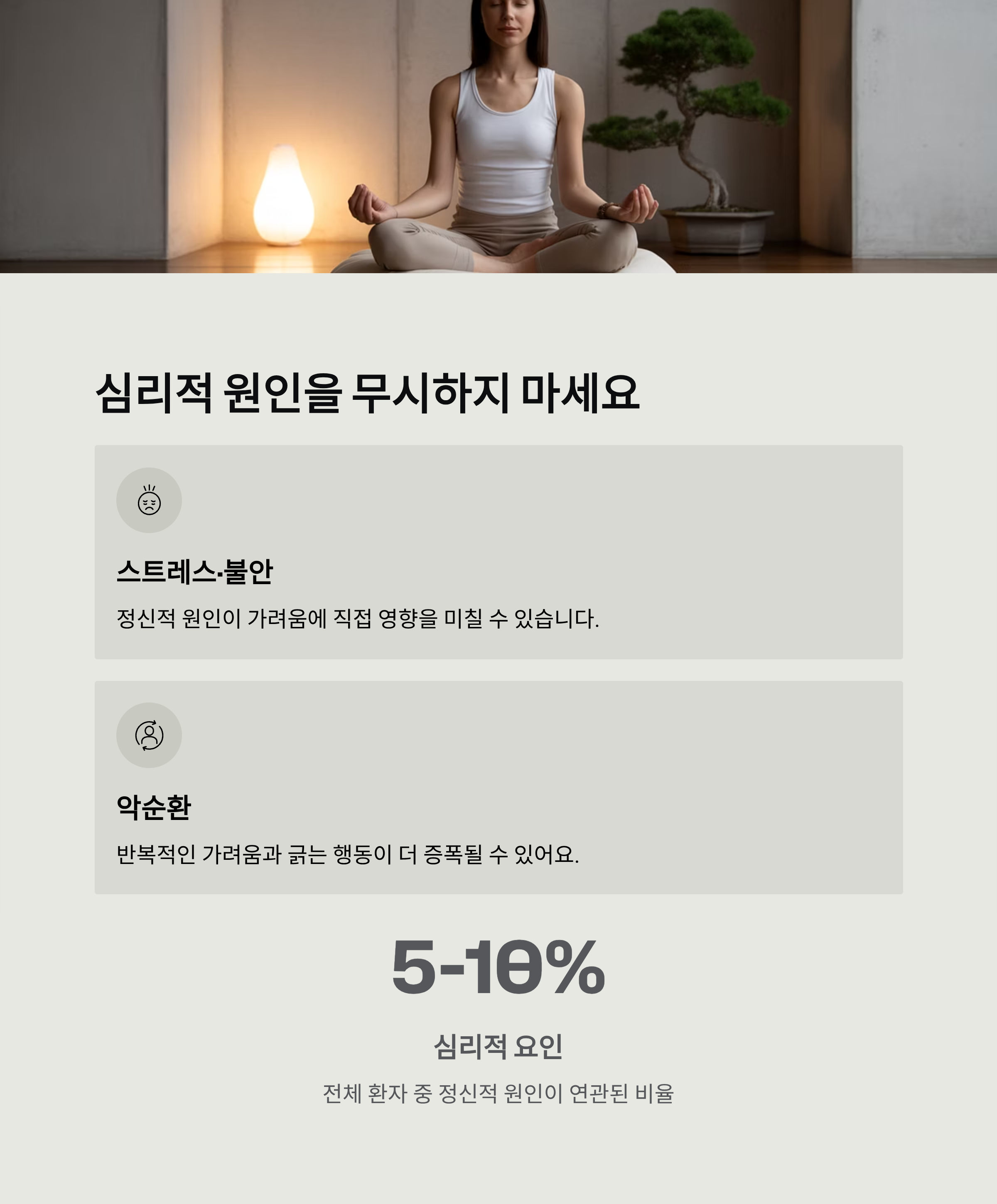 전체 환자의 5~10%는 이런 심리적 요인이 연관되어 있었고, 특히 반복적인 가려움과 긁는 행동이 더 증폭될 수 있습니다.