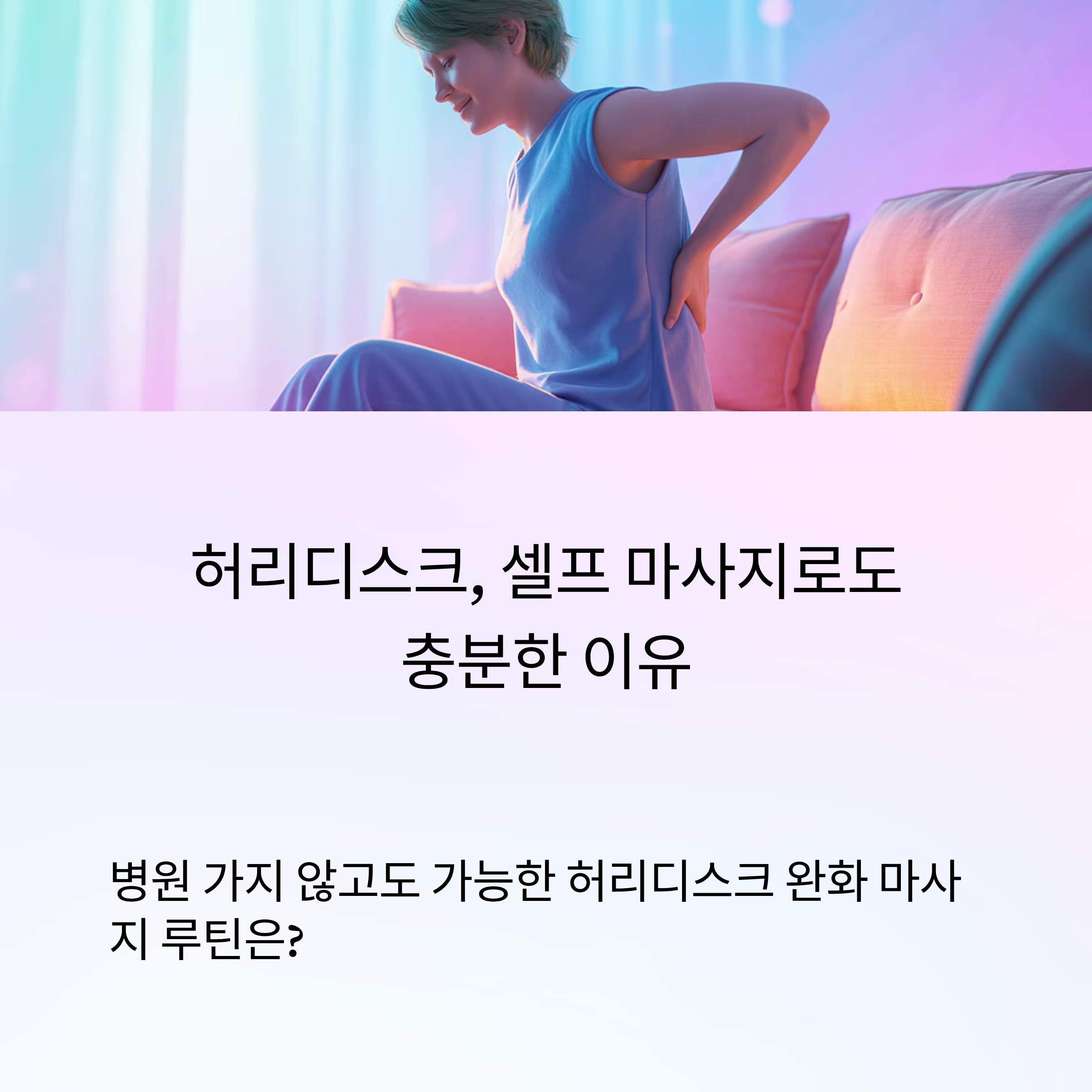 허리디스크 증상으로 병원 치료는 받았지만, 일상에서 통증 관리가 고민이신가요? 실제로 많은 분들이 셀프 마사지만으로도 일상생활에 큰 도움이 된다고 말합니다. 이 글에서는 집에서도 간단하게 따라할 수 있는 셀프 마사지 루틴을 중심으로, 허리디스크 환자에게 적합한 마사지 방법과 주의사항까지 꼼꼼하게 알려드립니다.