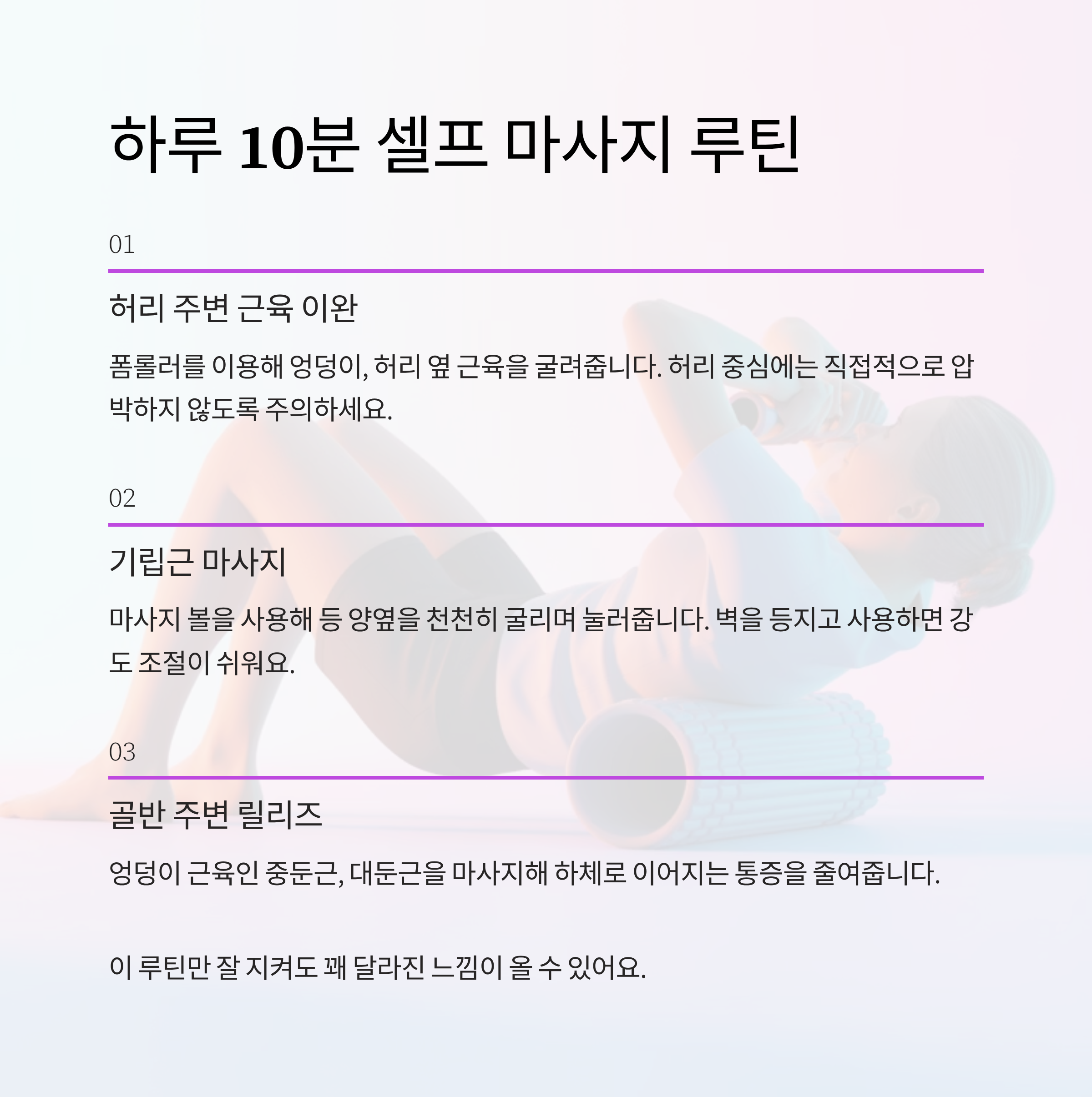 누구나 쉽게 따라 할 수 있는 마사지 루틴으로