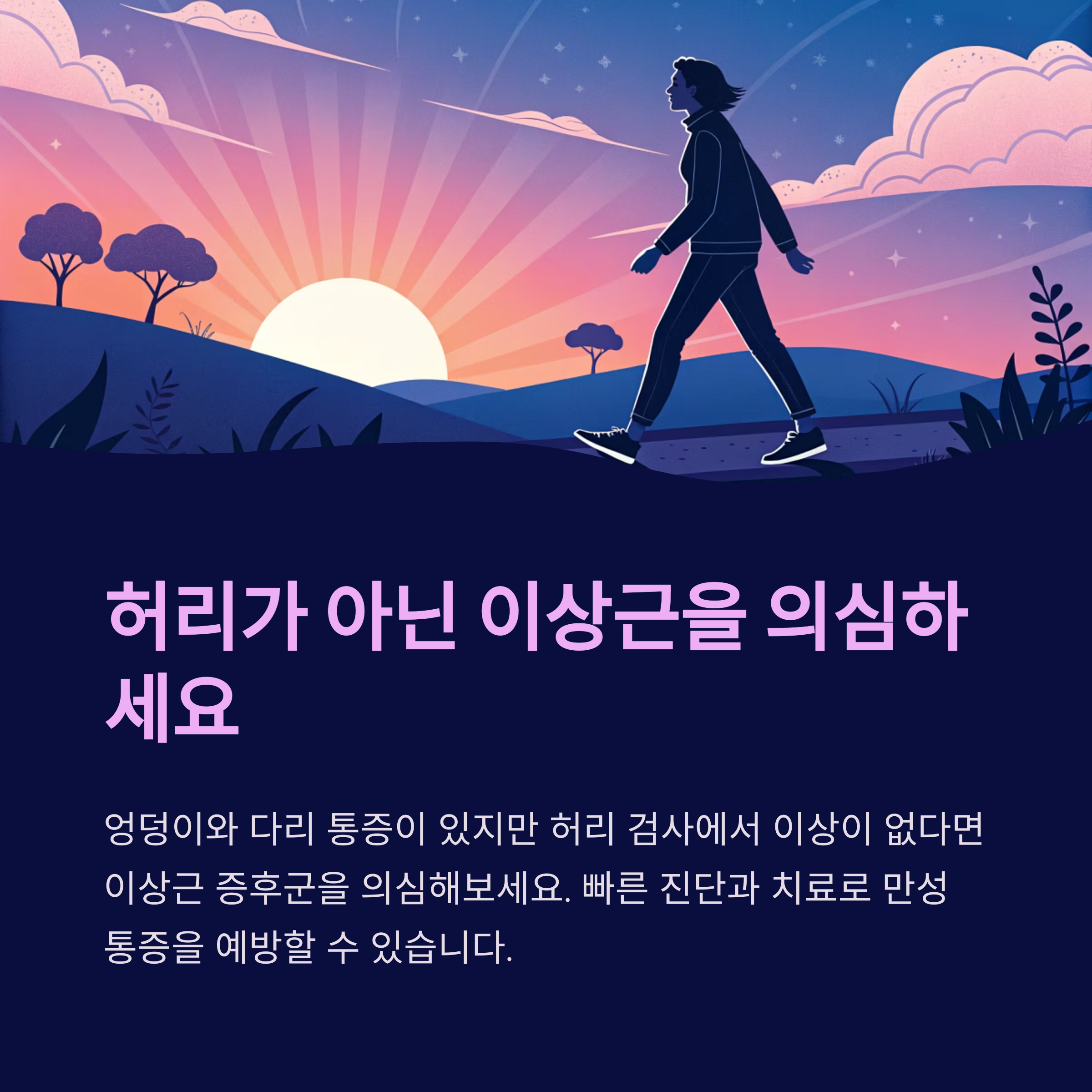 영상 검사에서 이상이 없을 때는 이상근 증후군을 의심해봐야 합니다.