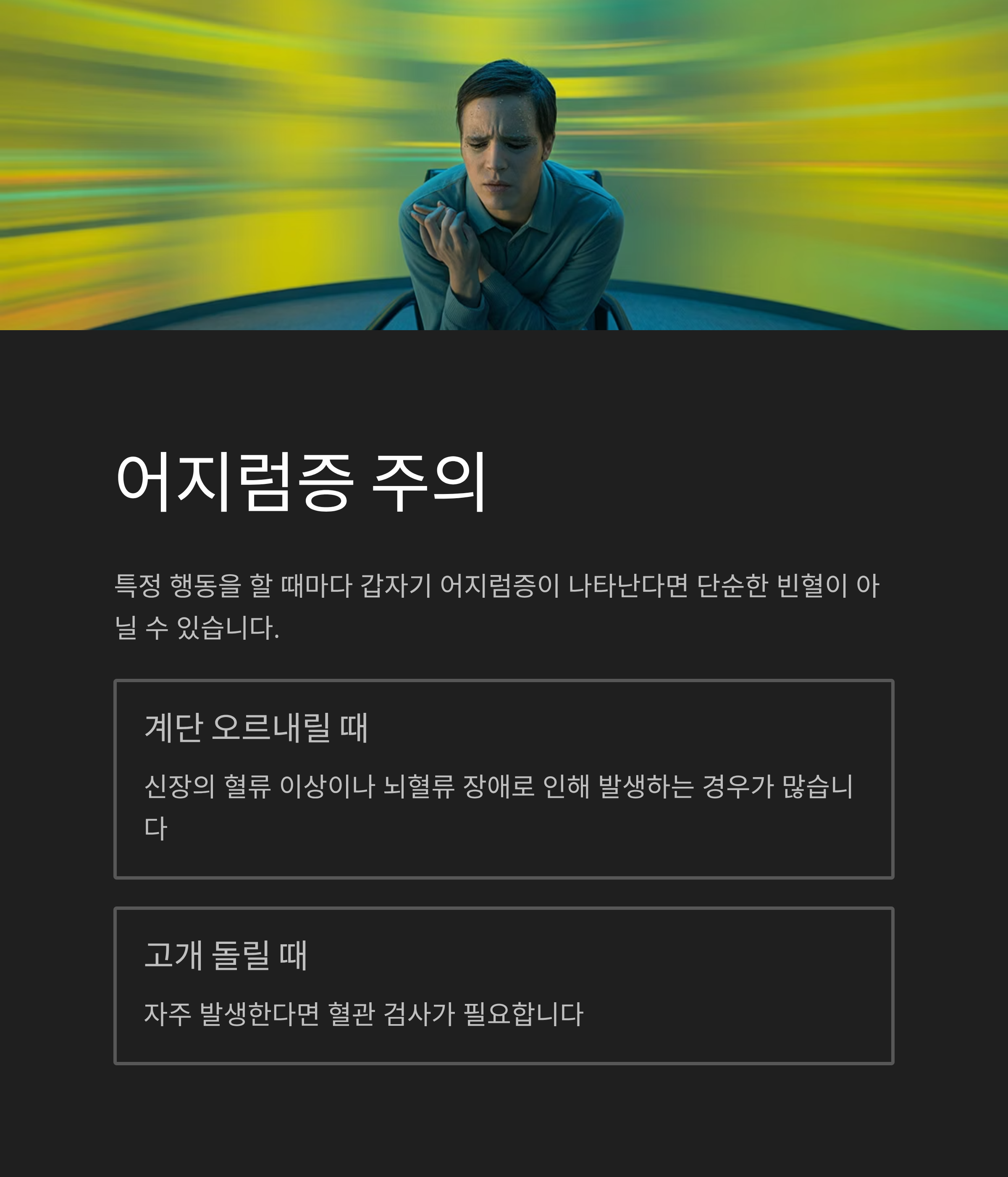 특정 행동을 할 때마다 갑자기 어지럼증이 나타난다면, 단순한 빈혈이 아닐 수 있어요.