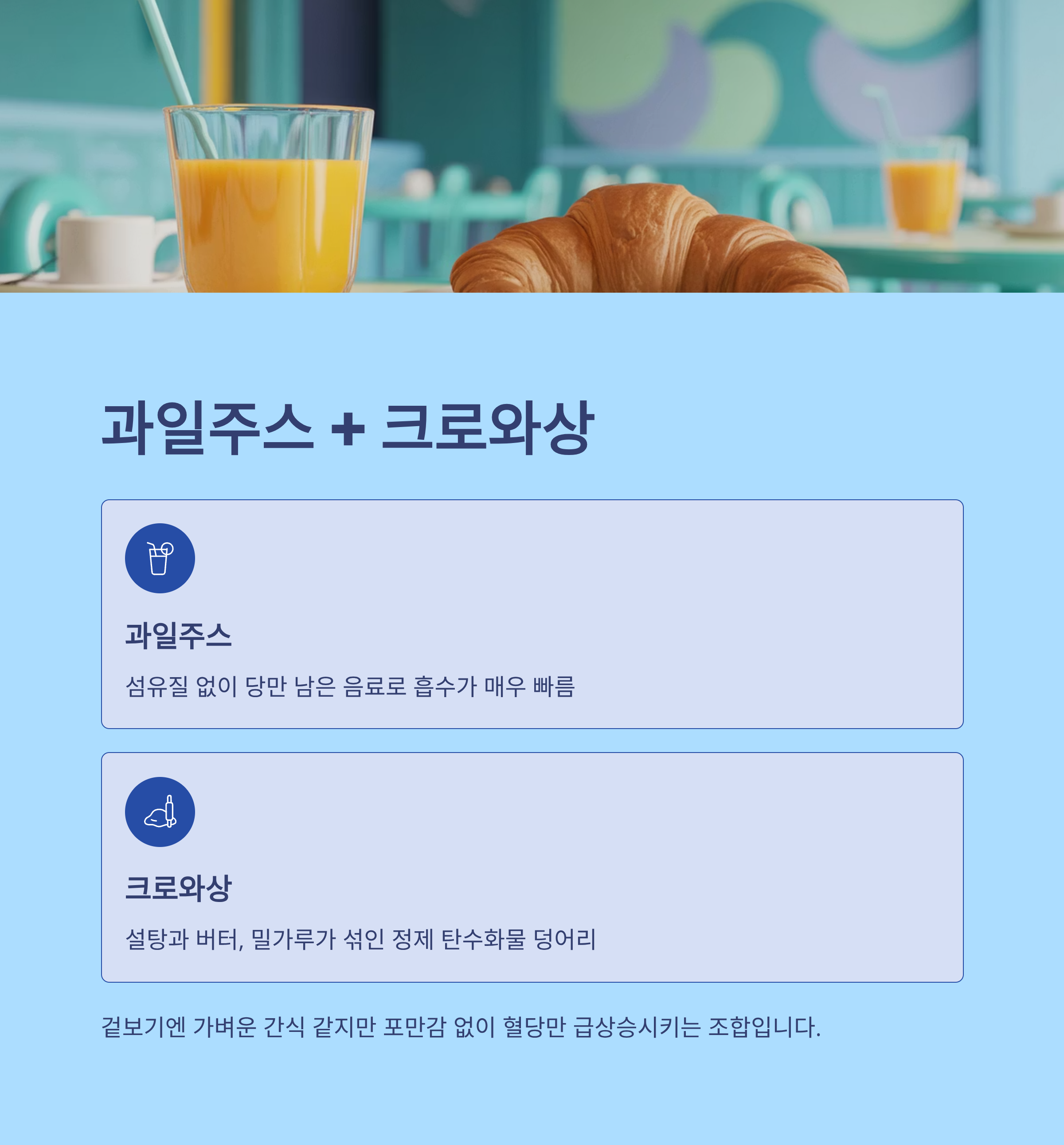 과일주스 + 크로와상 당+당 조합으로 혈당 급등